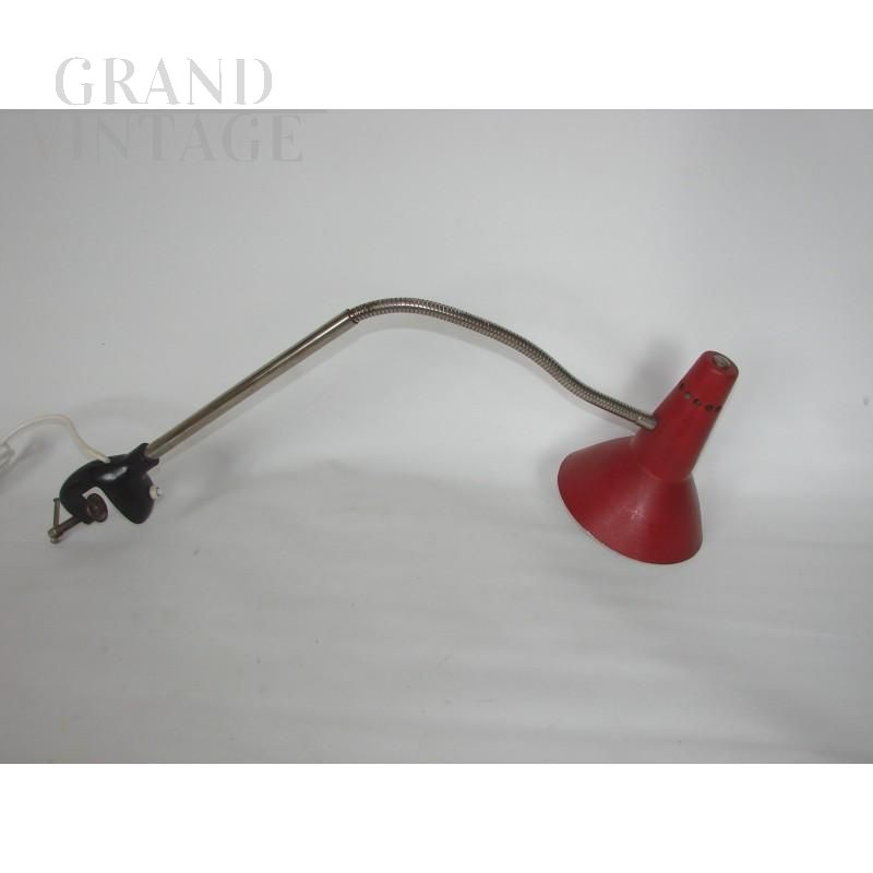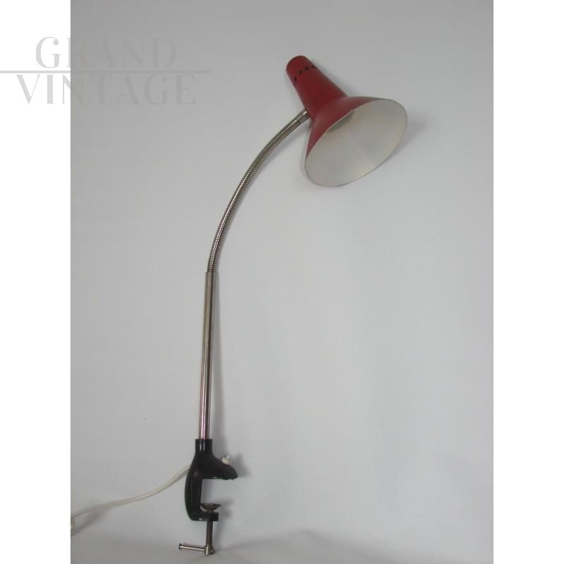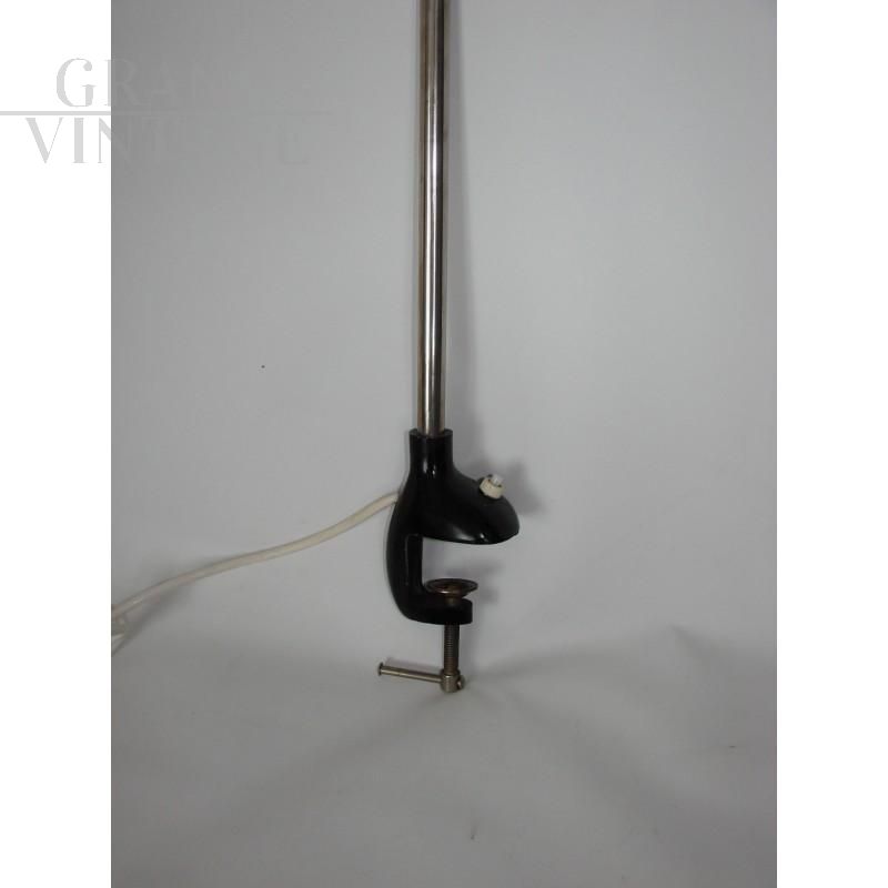 Kaiser vintage 60s desk lamp, with aluminum shade and nickel-plated steel structure, mounted on a so-called "vice", preserved in very good condition. Requires E27 bulb.