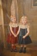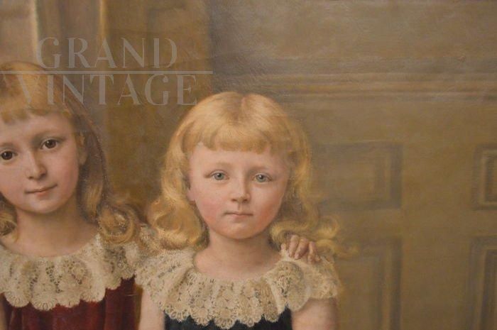 Karel de Kesel - painting of two child sisters, oil on panel from 1890