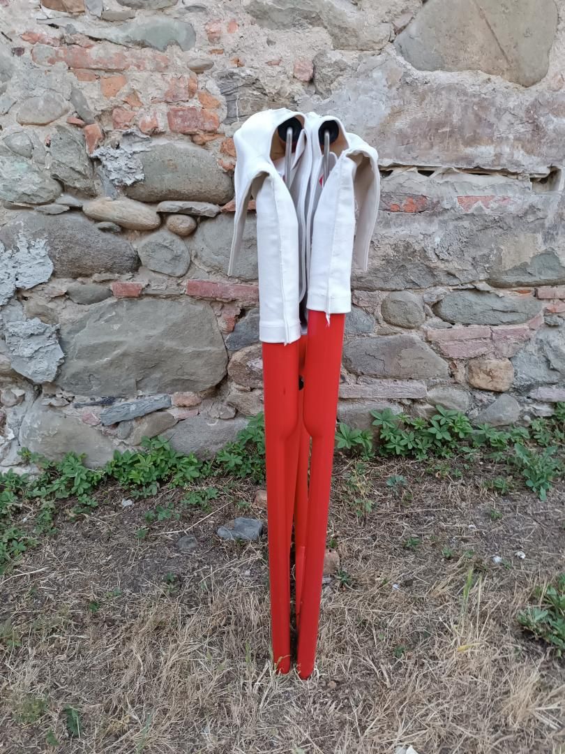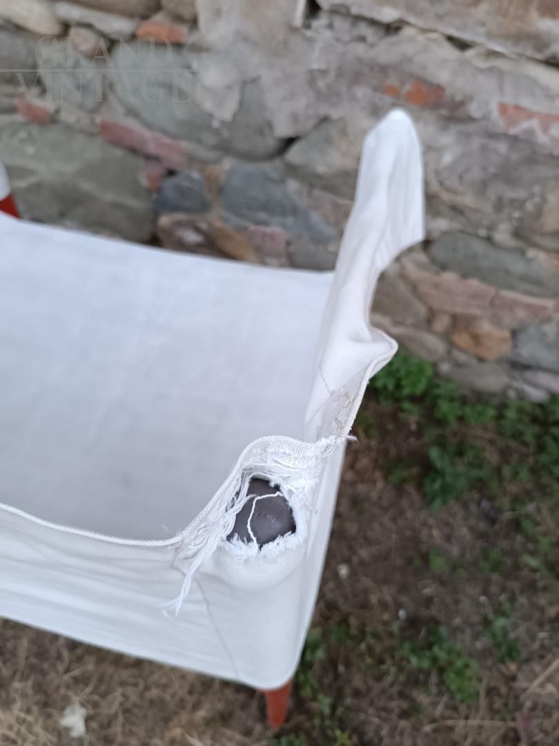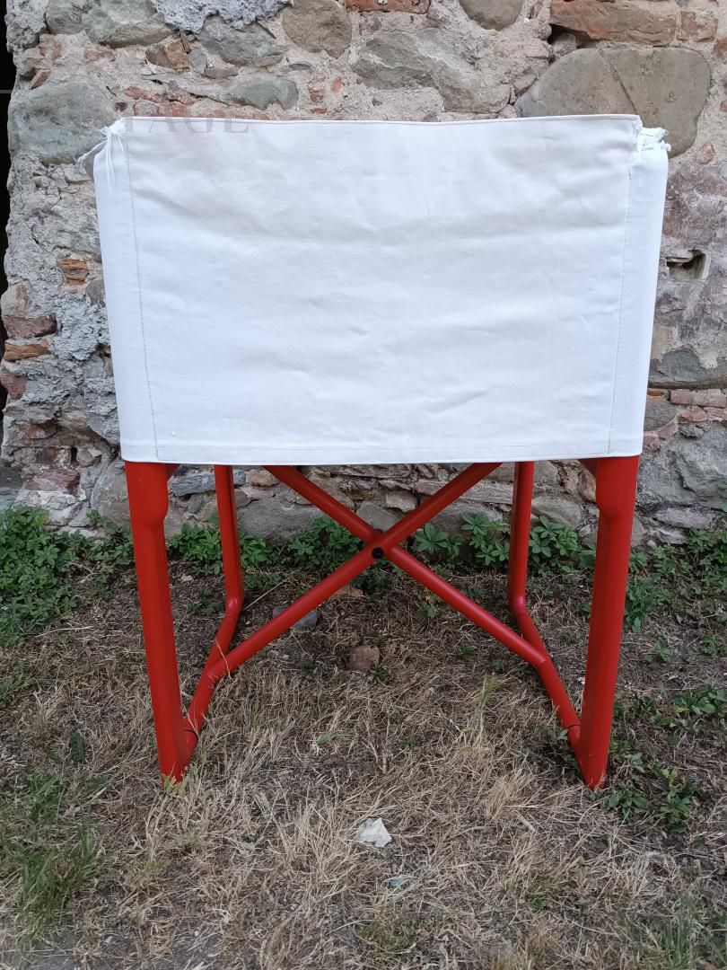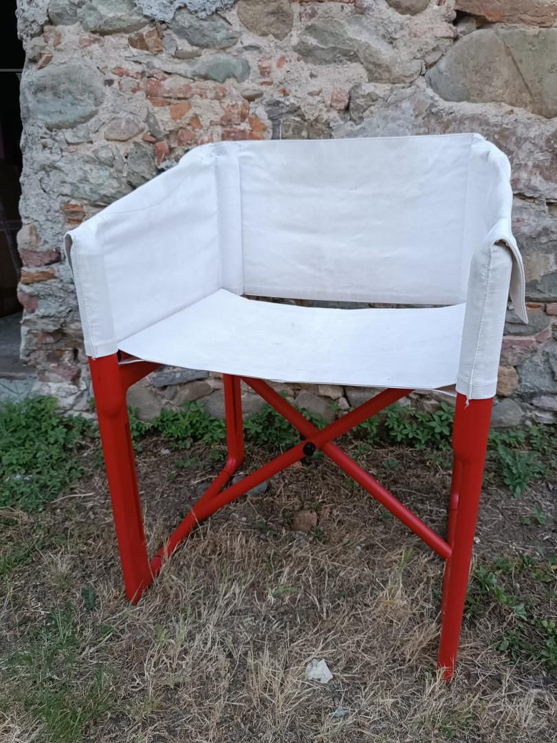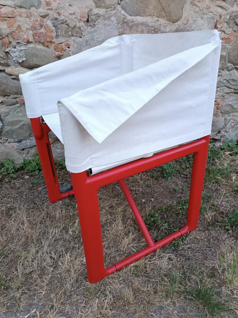Kartell chair model 4820 designed by Masayuki Matsukaze in 1979, with red metal and plastic frame, with removable, washable white seat and backrest fabric. Extremely comfortable, foldable and disassembled. Authentic item of refined and timeless design and above all a product made to last. In good condition, but the fabric is slightly torn in one corner (as shown in the photo).