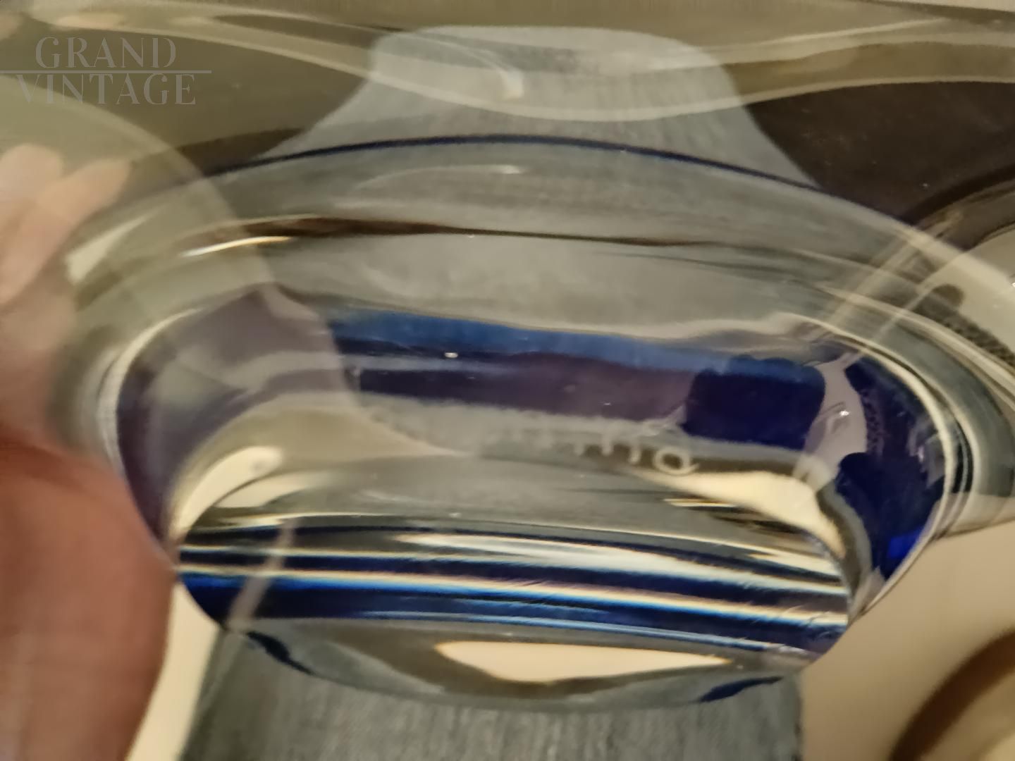 La Murrina centerpiece bowl in clear Murano glass with magnificent blue highlights, complete with engraved signature on the bottom, in perfect condition! This is a striking piece and perfect for any table.