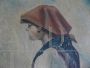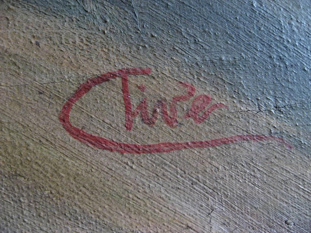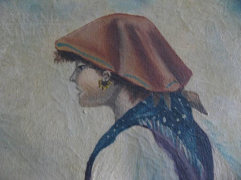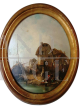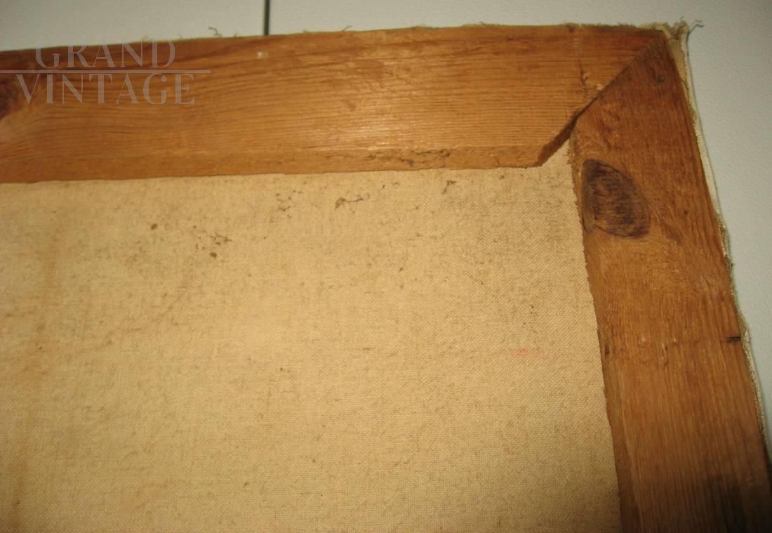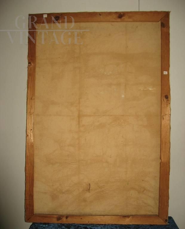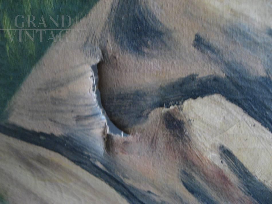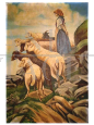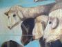 The Shepherdess with flock, painting signed Clive oil on canvas of the 20th century without frame.