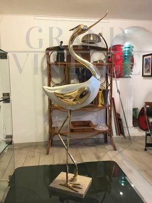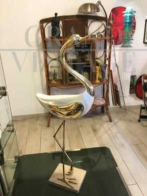 Lacquered wood and gilt bronze heron sculpture by Antonio Pavia, 1970s