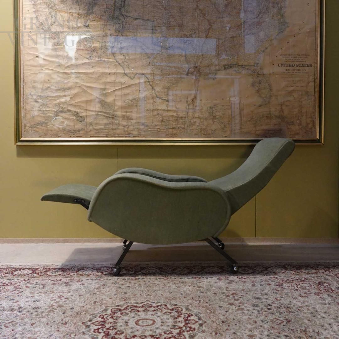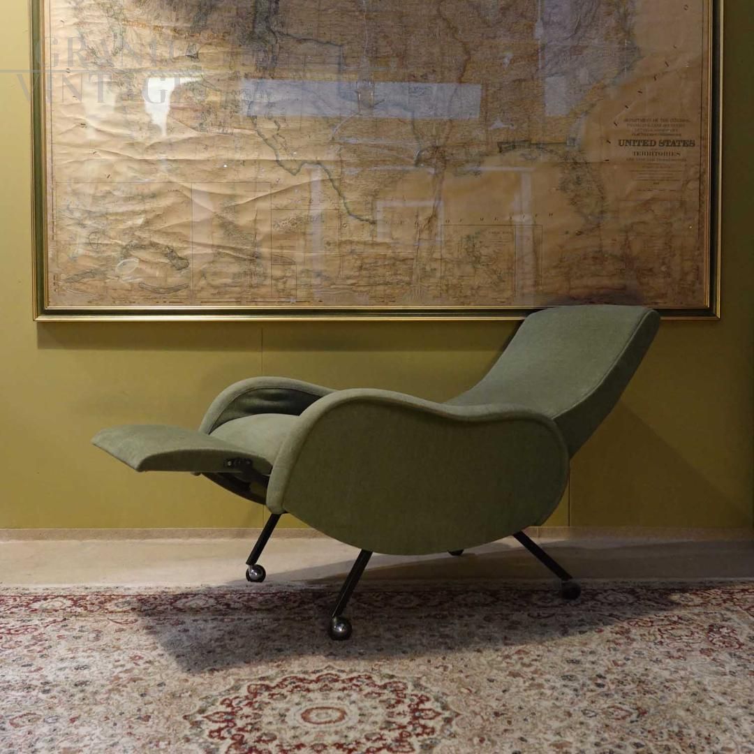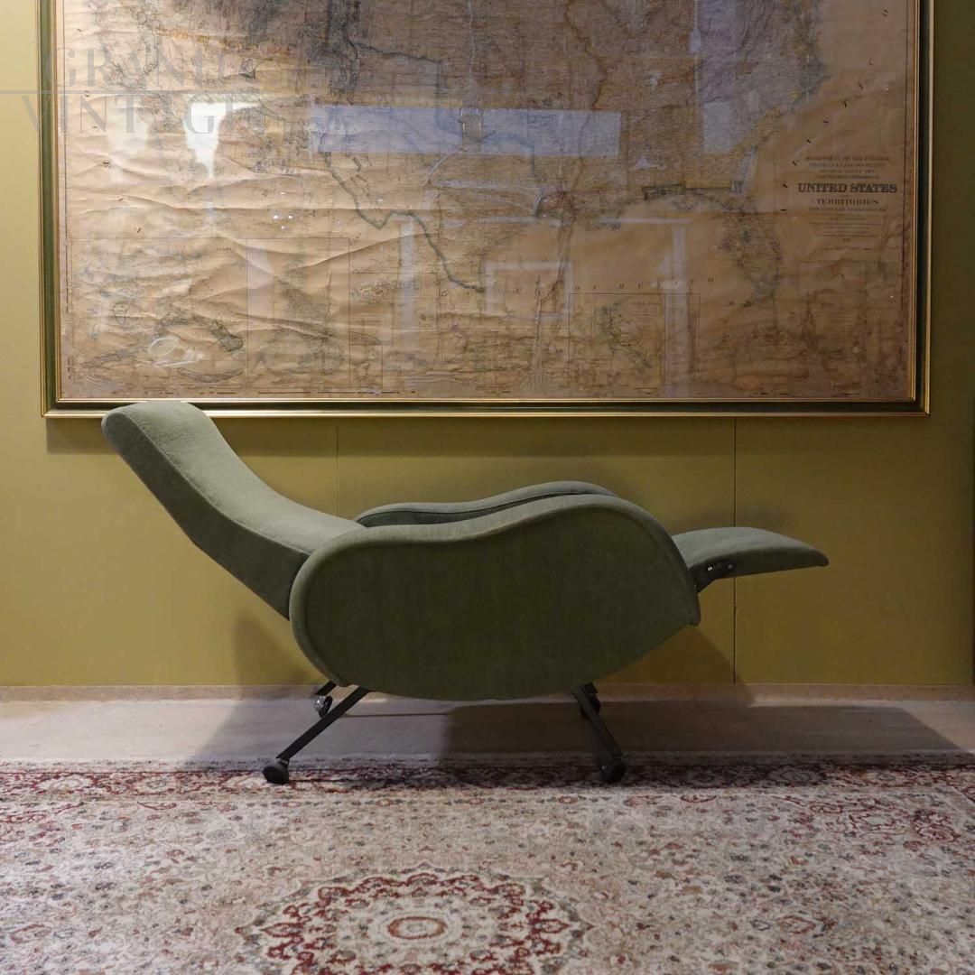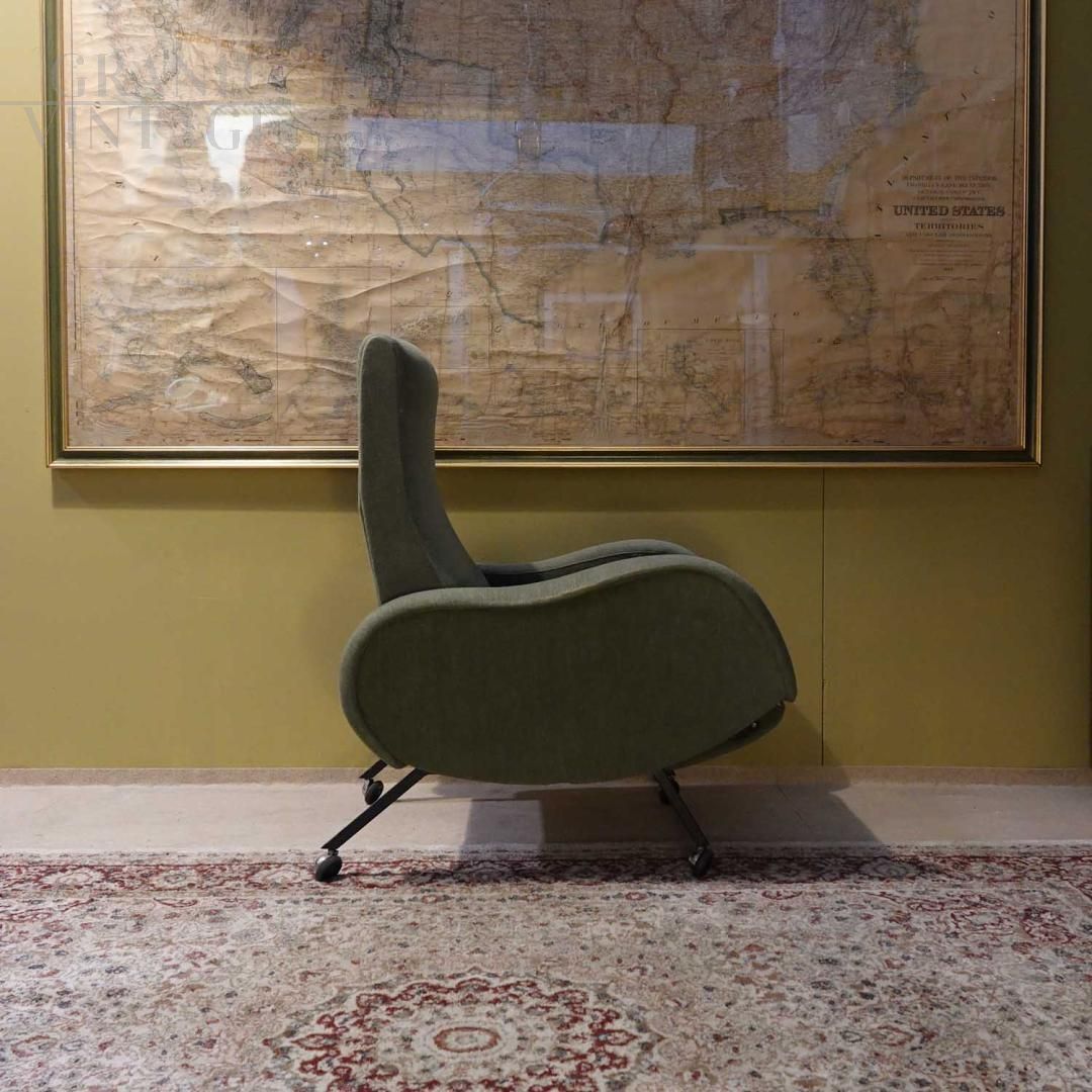 Lady style reclining armchair covered in sage green velvet, equipped with wheels, with a feminine, refined and enveloping design. Its soft shapes and elegant covering make it ideal for bedrooms, sophisticated living rooms or boudoir corners with a vintage charm.