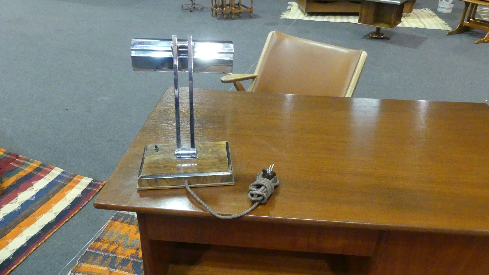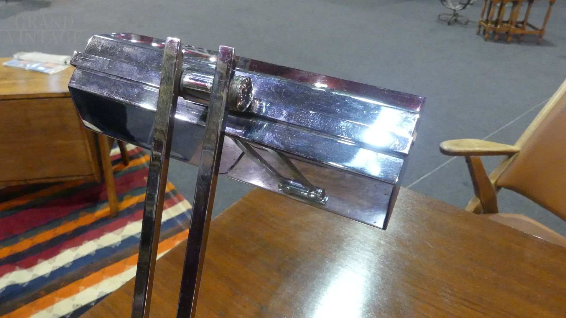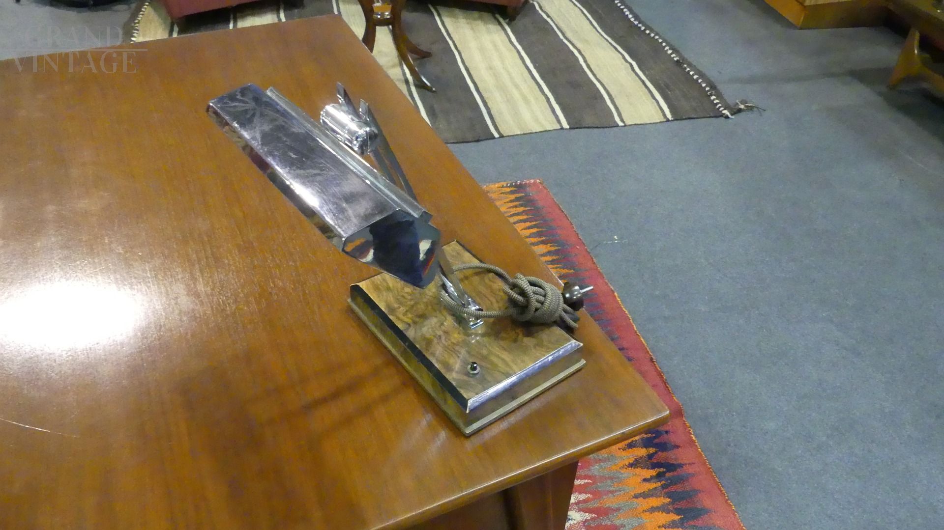 Art decò lamp in walnut briar and chrome. Complete with original and working cable (adjustable). Period: 1940s, of French origin.