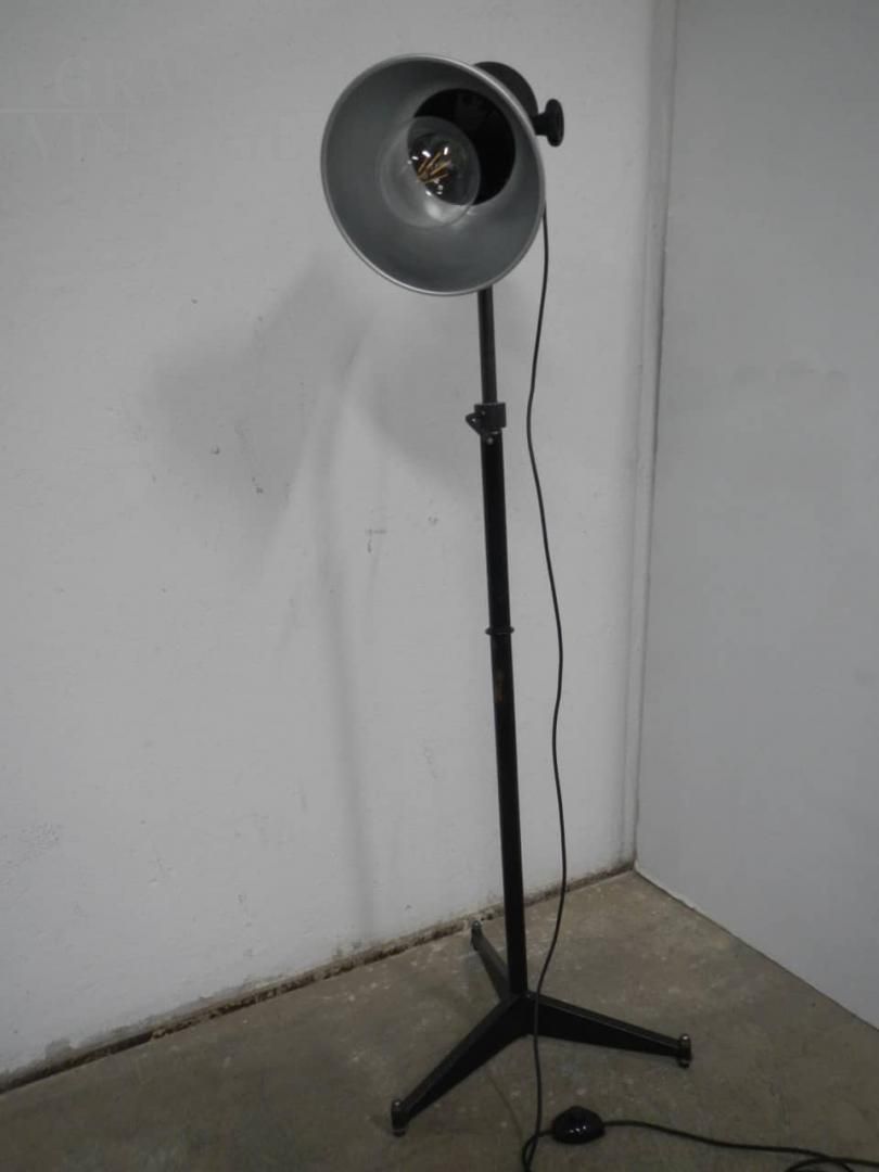 Photographic lamp from the 70s adapted as a floor lamp with a vintage base and adjustable height from 140 to 190 cm, restored and with a working lighting system.
