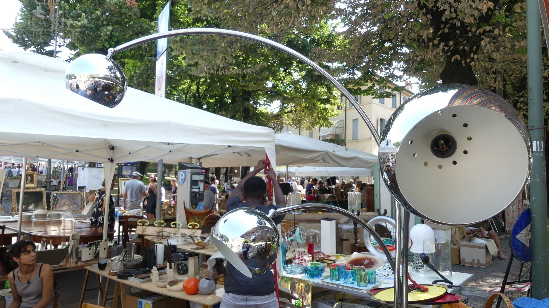 Lily of the valley lamp by Goffredo Reggiani, 1970. Produced in chromed steel with marble base.