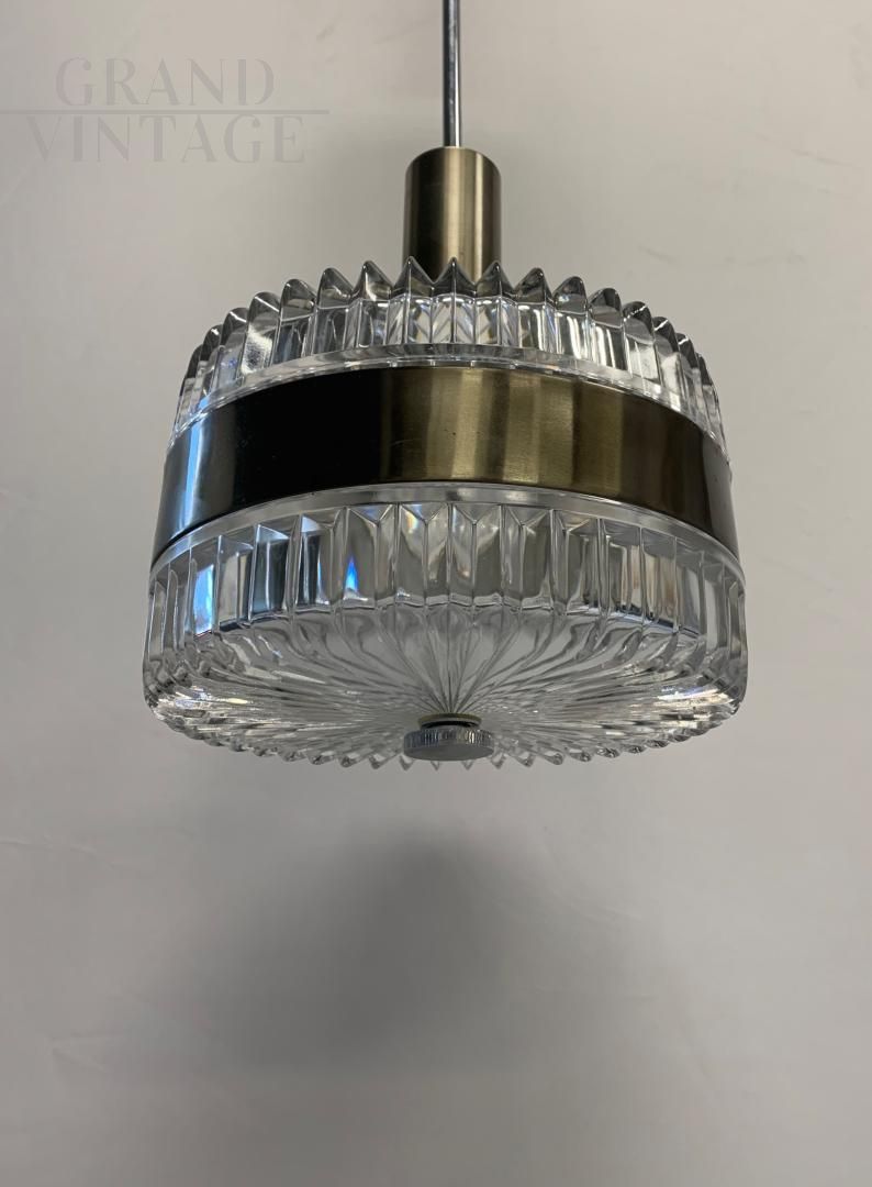 Faceted glass suspension light attributed to Sciolari, Italy 1960s