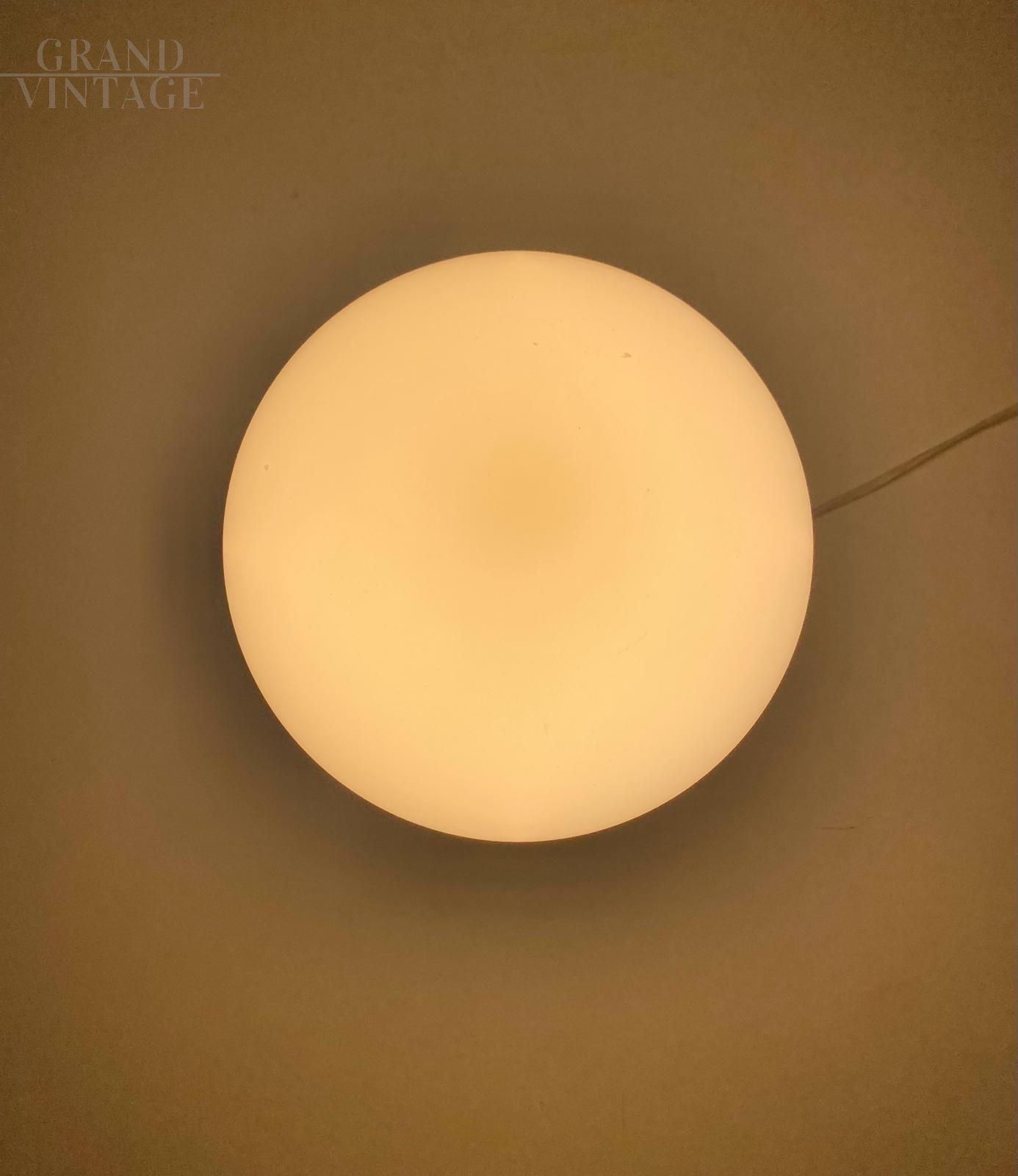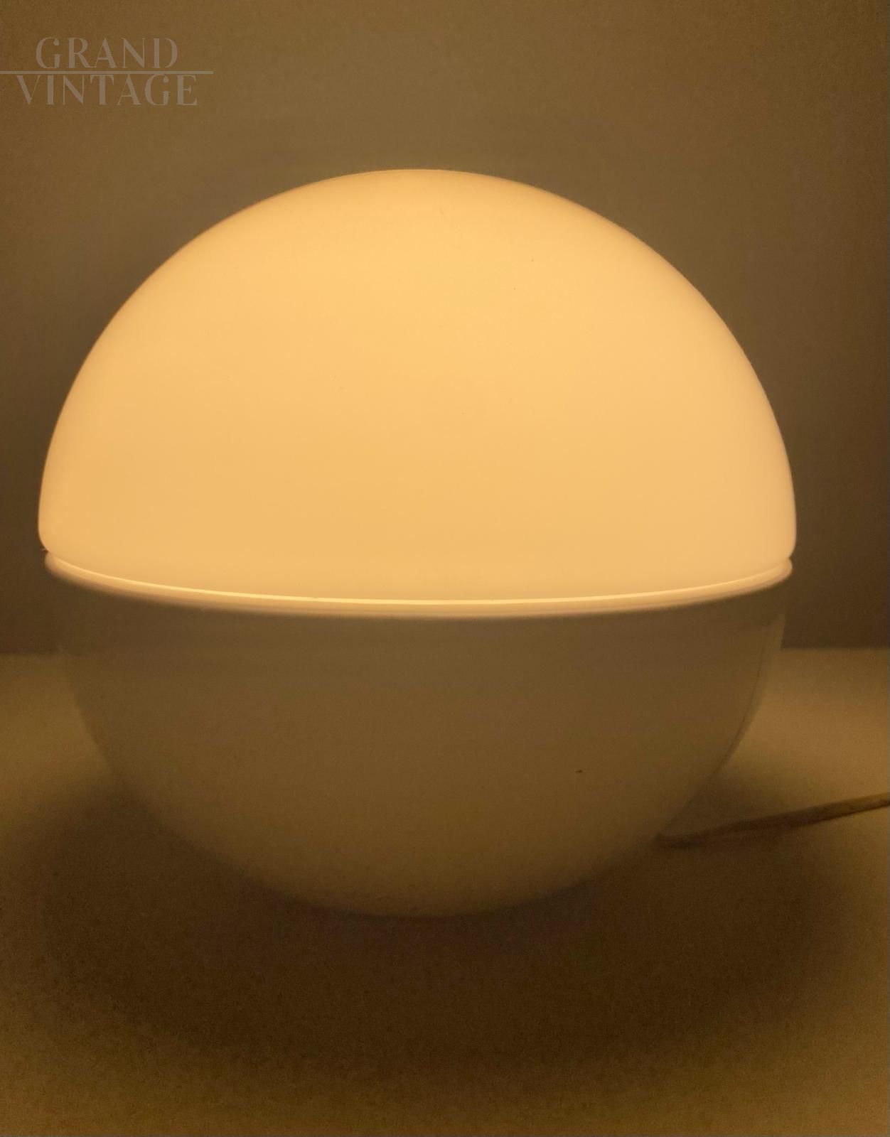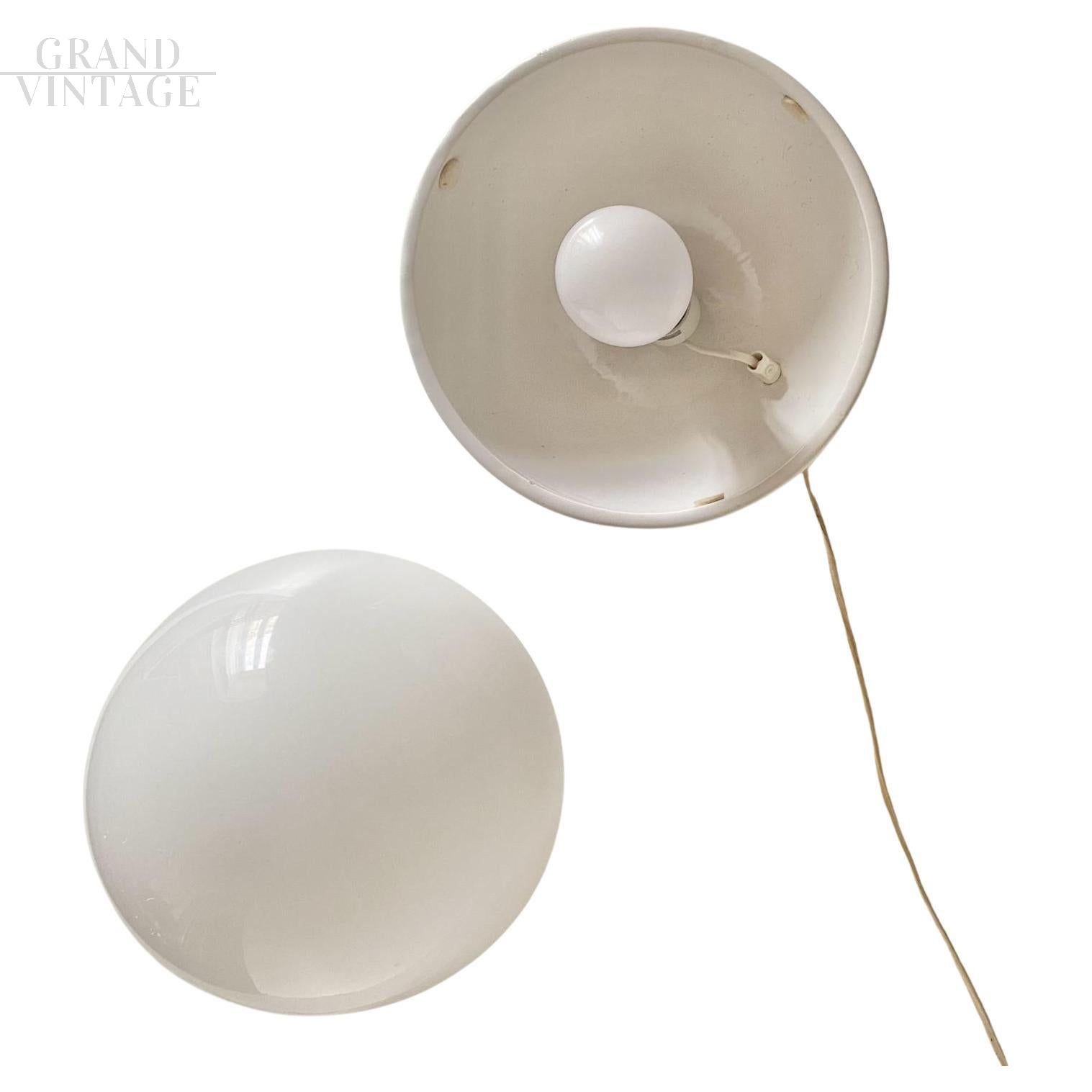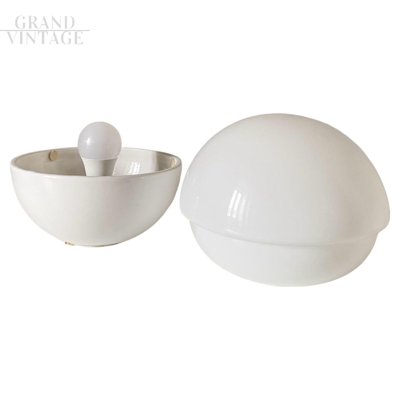 Lampalla model table lamp with a typical spherical shape, produced by Ceramiche Albino Bagni in the 1970s with white ceramic base and white Murano glass lampshade. In very good condition, with small signs of aging.
