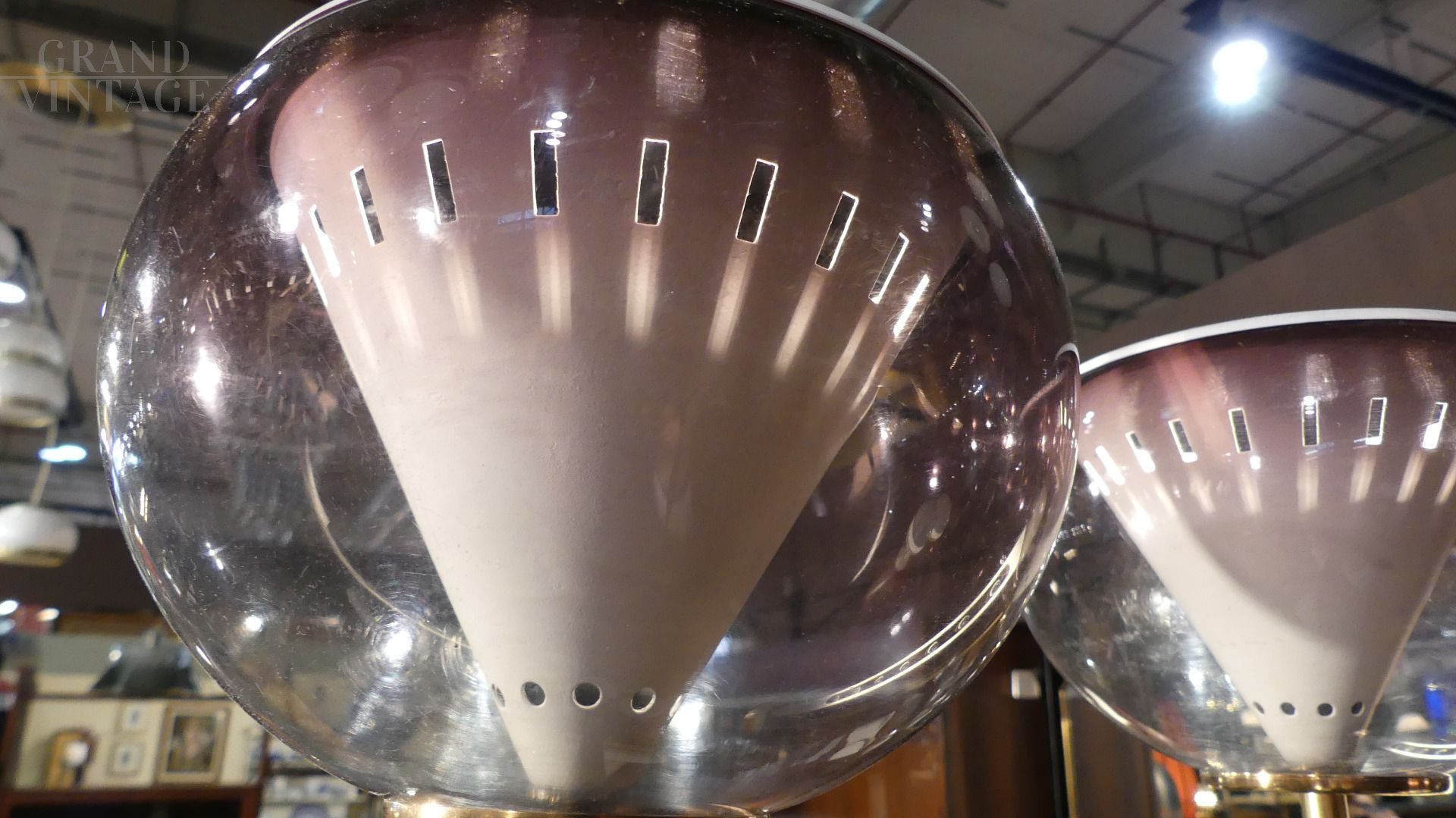 Lampada piantana vintage Lamter in ottone e plexiglass
