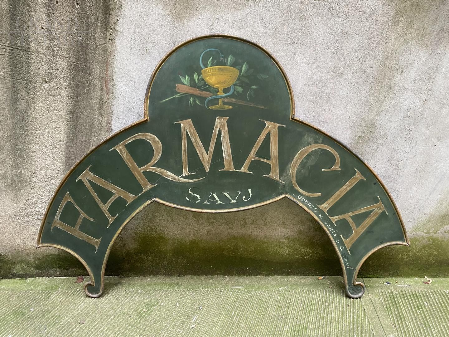 A Timeless Elegance. A fragment of history that spans the centuries, an echo of ancient knowledge enclosed in a work of art. This magnificent ancient sign from the 1940s tells the story of the charm of Piedmontese pharmacies, places of alchemy and wonder, where tradition and science met in perfect balance.