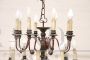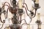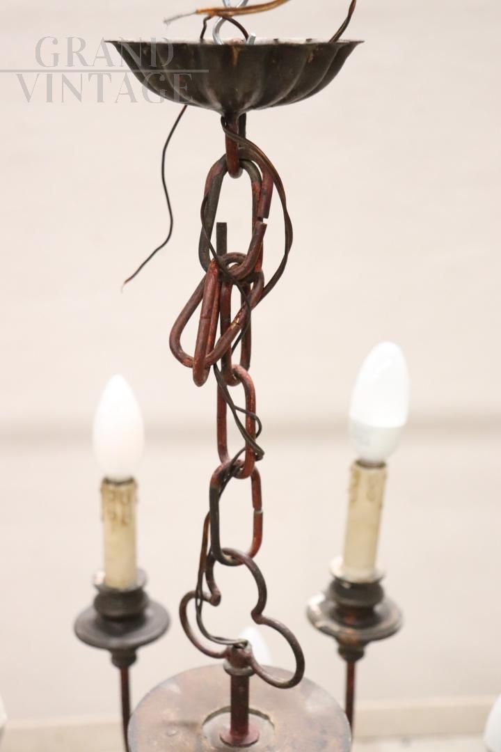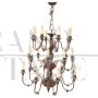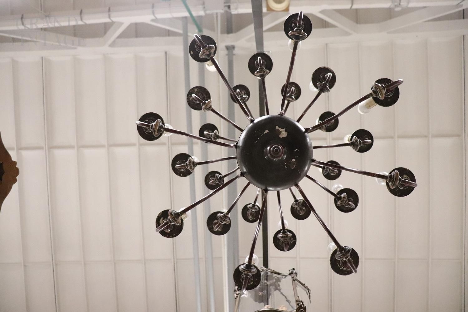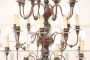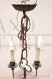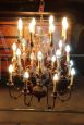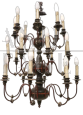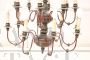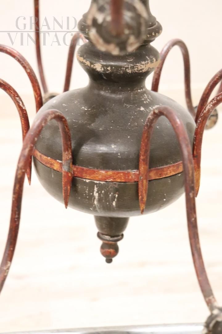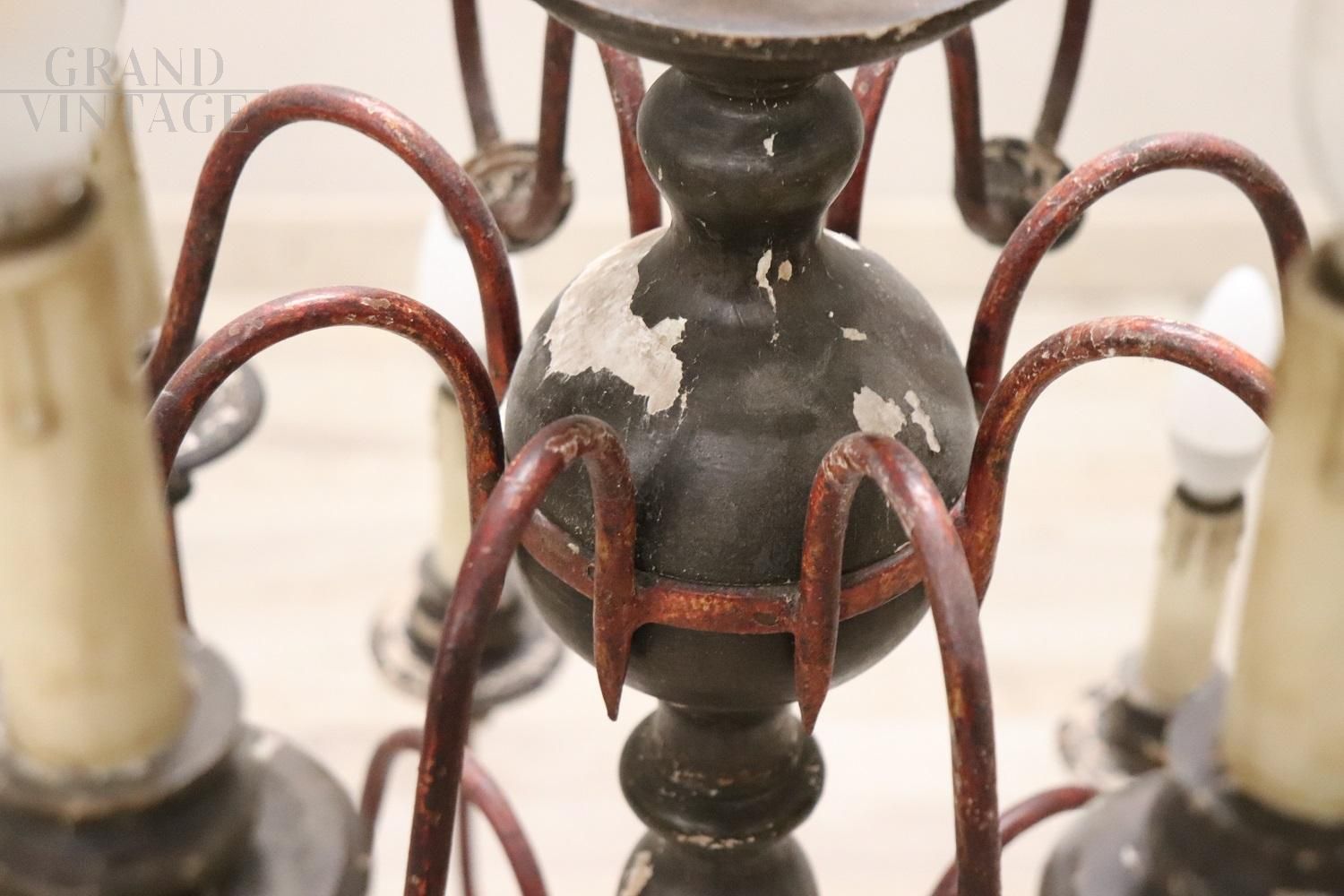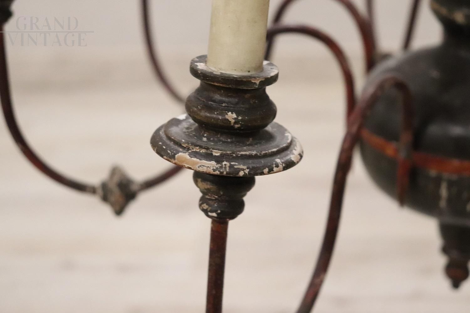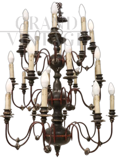 Large antique chandelier in wood and iron, early 20th century, with 24 lights