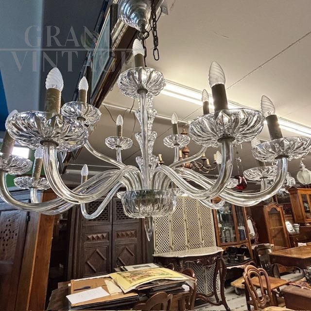 Large antique chandelier from the late 19th century in magnificent clear crystal, featuring 16 light points, originally from a noble Italian palace. The chandelier can be completely disassembled for safe transport. The bulb holders are hand-painted glass in the shape of candles.