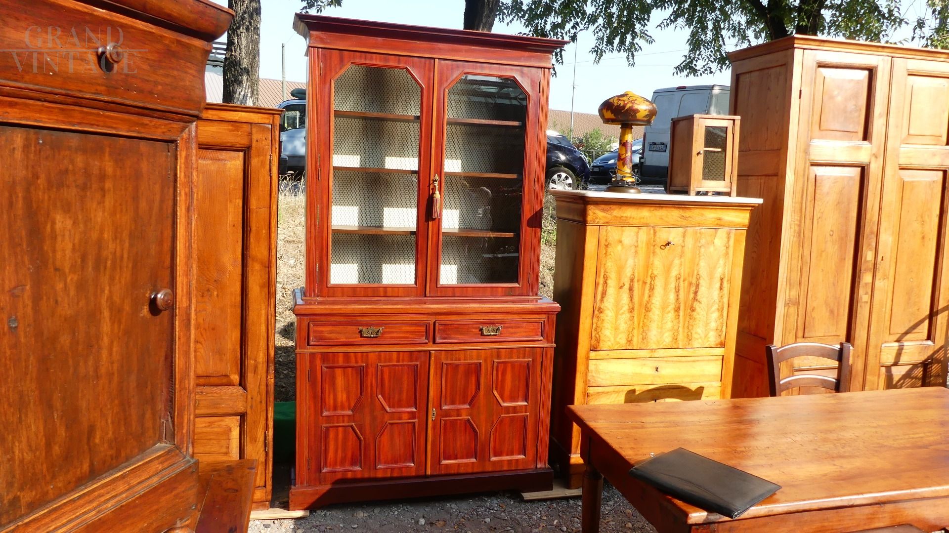 Beautiful English 1800 display cabinet made of mahogany red wood. Two doors and two drawers.