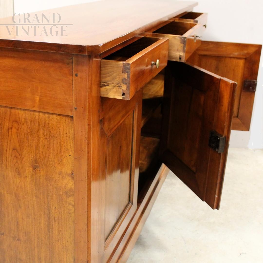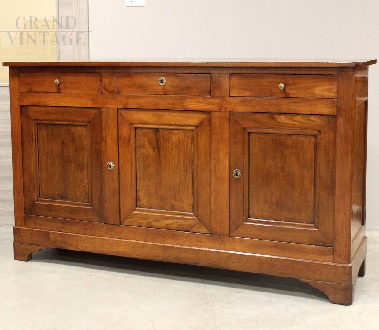 Large antique 3-door sideboard from the Louis Philippe era in solid cherry wood, from the mid-19th century, restored.