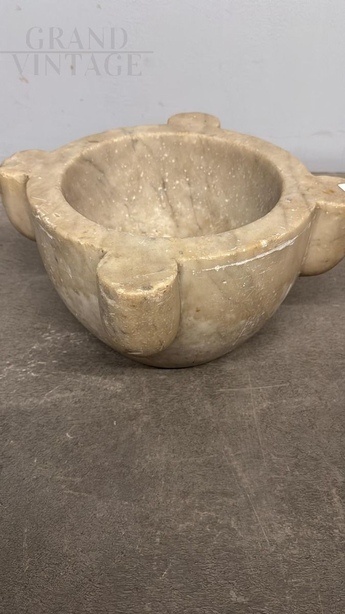 Large antique mortar in Carrara marble with the coat of arms of the Order of Malta