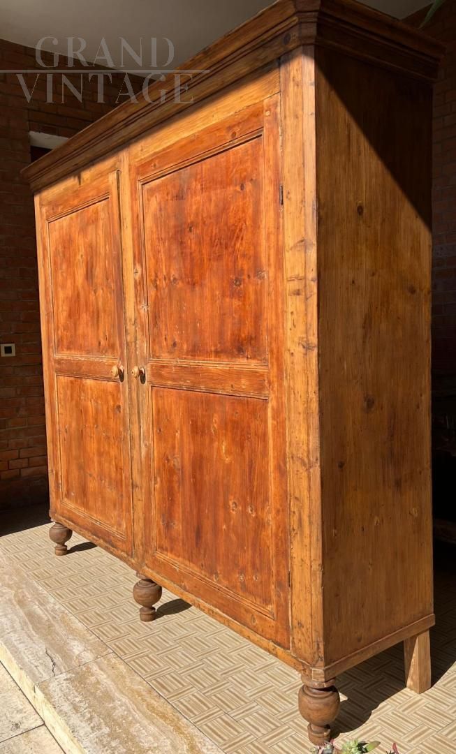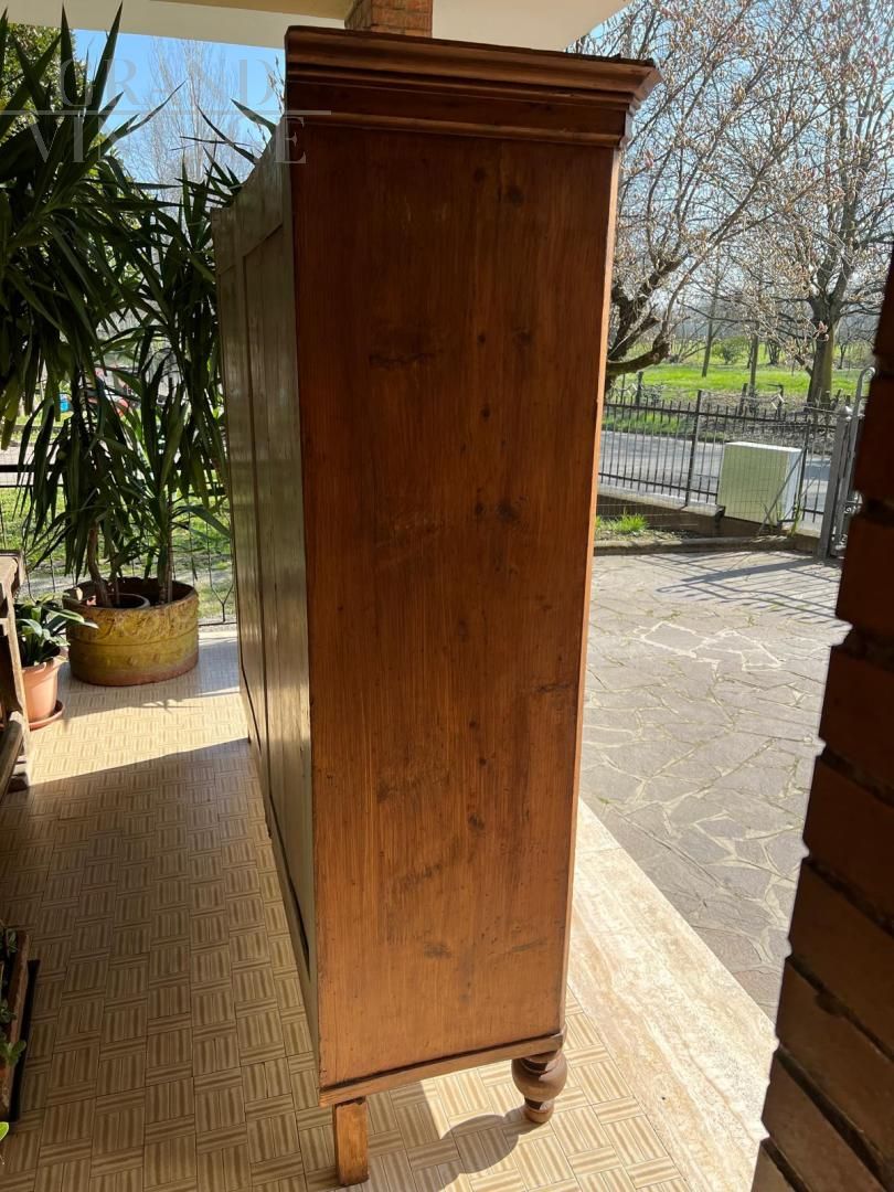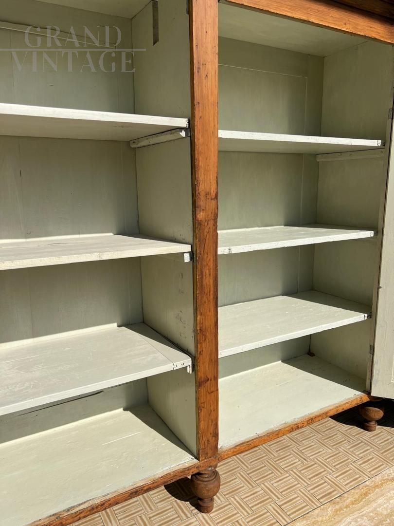 Large antique rustic pantry cabinet, cupboard or wardrobe with shelves, made of natural fir wood, made in Italy in the 19th century, very rare to find with these dimensions: 200 x 50 cm, height 195 cm. It has a worn and natural look with a powder-blue lacquered interior. It is in very good condition having been restored a few years ago.