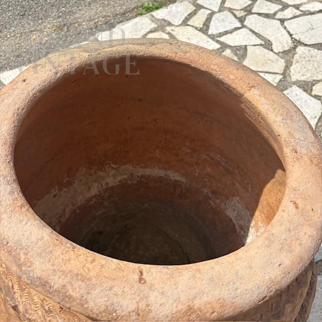 Large antique terracotta garden vase from the 18th century, 60 cm high.