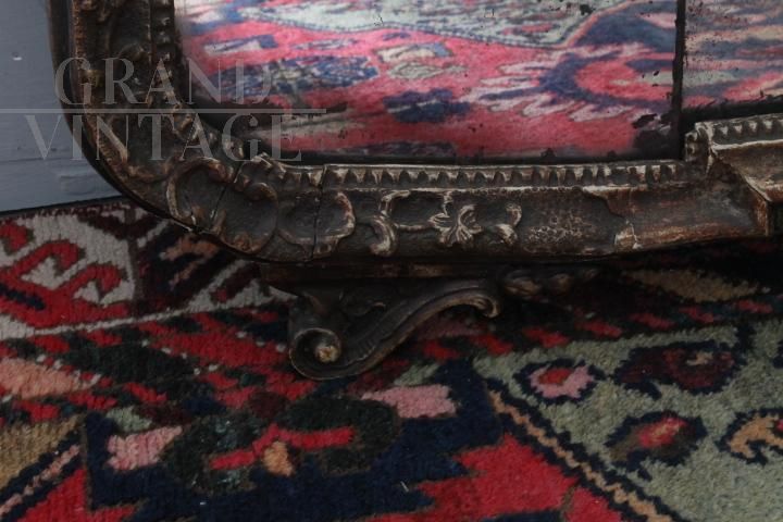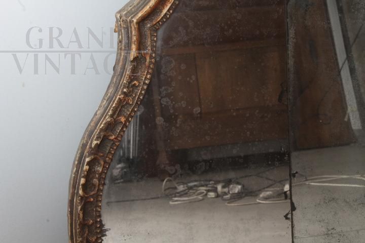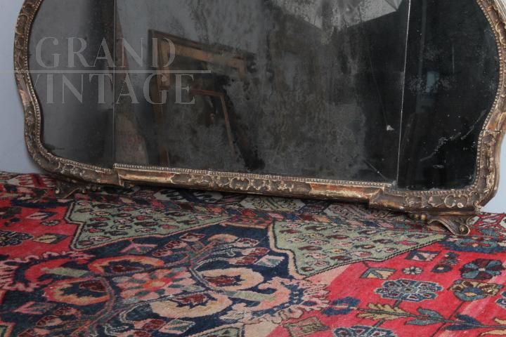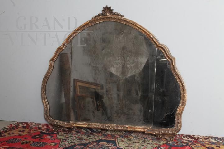 Large antique Venetian freestanding mirror with a typical shell shape, from the Louis XVI period, late 18th century, gilded and with antique mercury mirror, presence of antique hangers and nails. All original and with a unique charm!