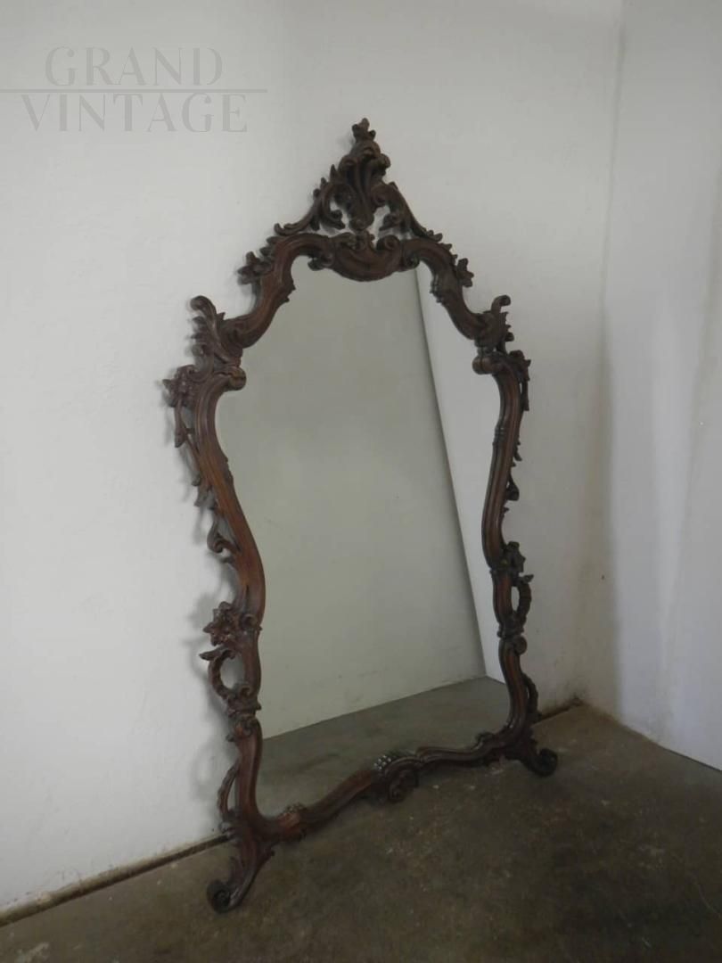 Large Baroque style mirror in carved lime wood, 1950s
