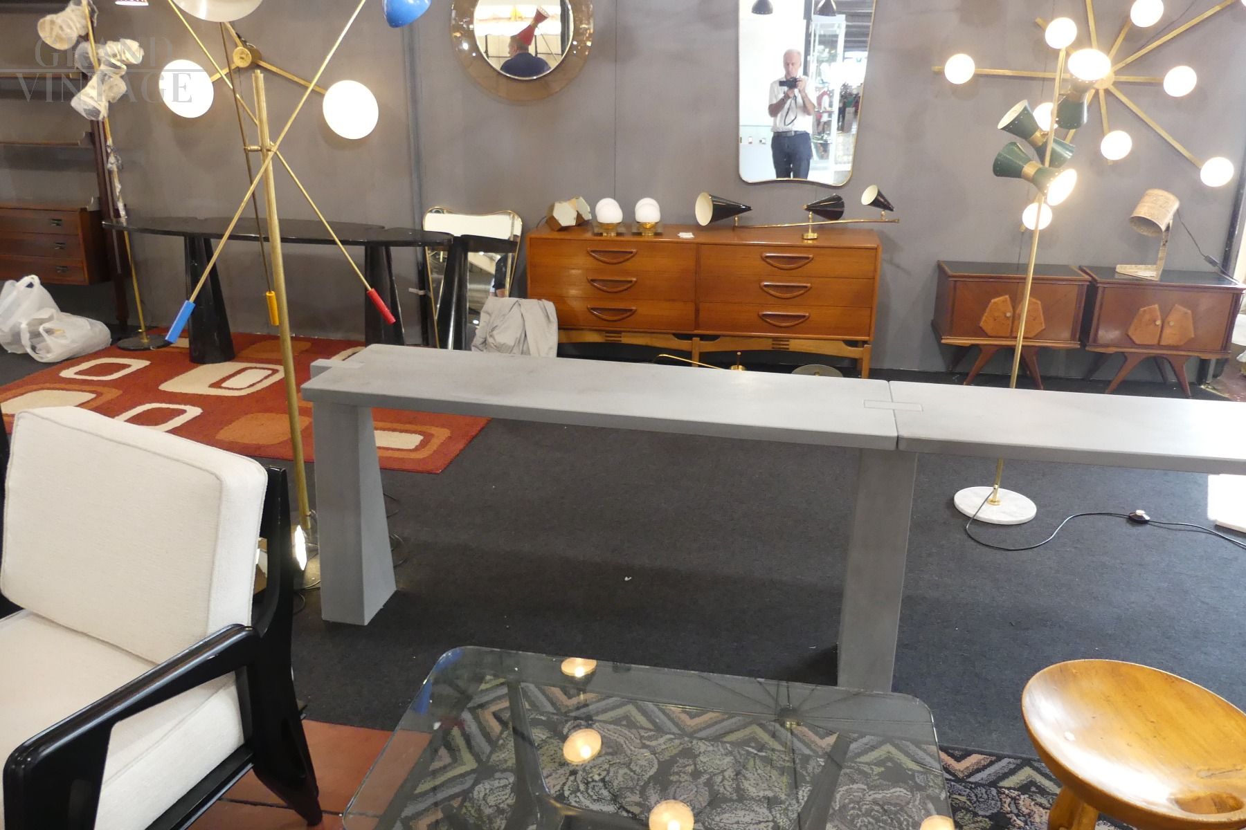 Large console design by Angelo Mangiarotti, Inca model, in Pietra Serena (Serene stone), with a length of 289 metres, perfect for furnishing a long corridor or a room in its entire length, or even for separating a large room optically into two parts. The console is in excellent condition. Pietra Serena is an ancient material rich in history, characteristic of Tuscan architecture, it is a fine-grained sandstone rock that is very compact and uniform in its grey/blue colour.