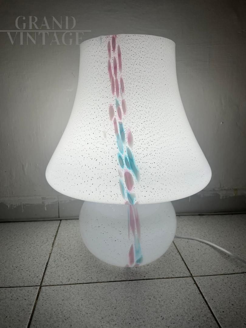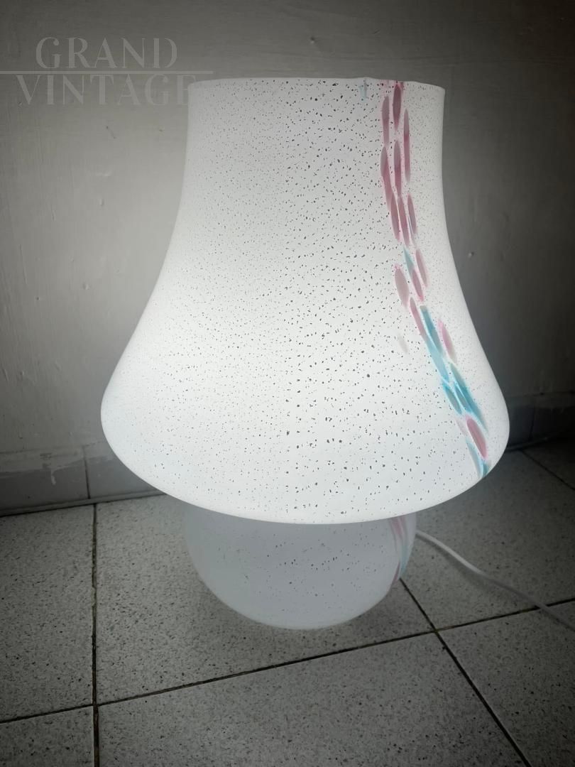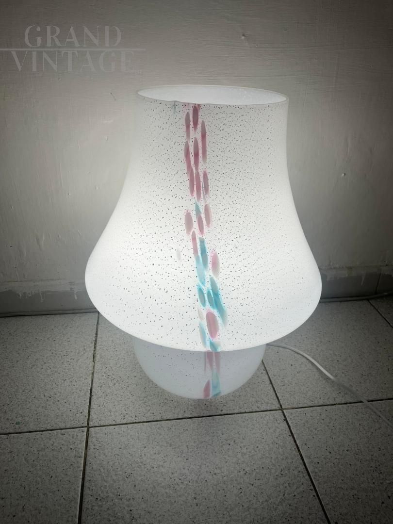 Huge mushroom lamp in artistic Murano glass with blue and pink glass decorations, 1970s, height 50 cm and circumference 40 cm.