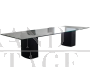It can accommodate up to 14 seats. The weight of 290 kg in total is indicative, the weight of the wooden legs must be added to the 210 kg of the glass top that are derived from a calculation.