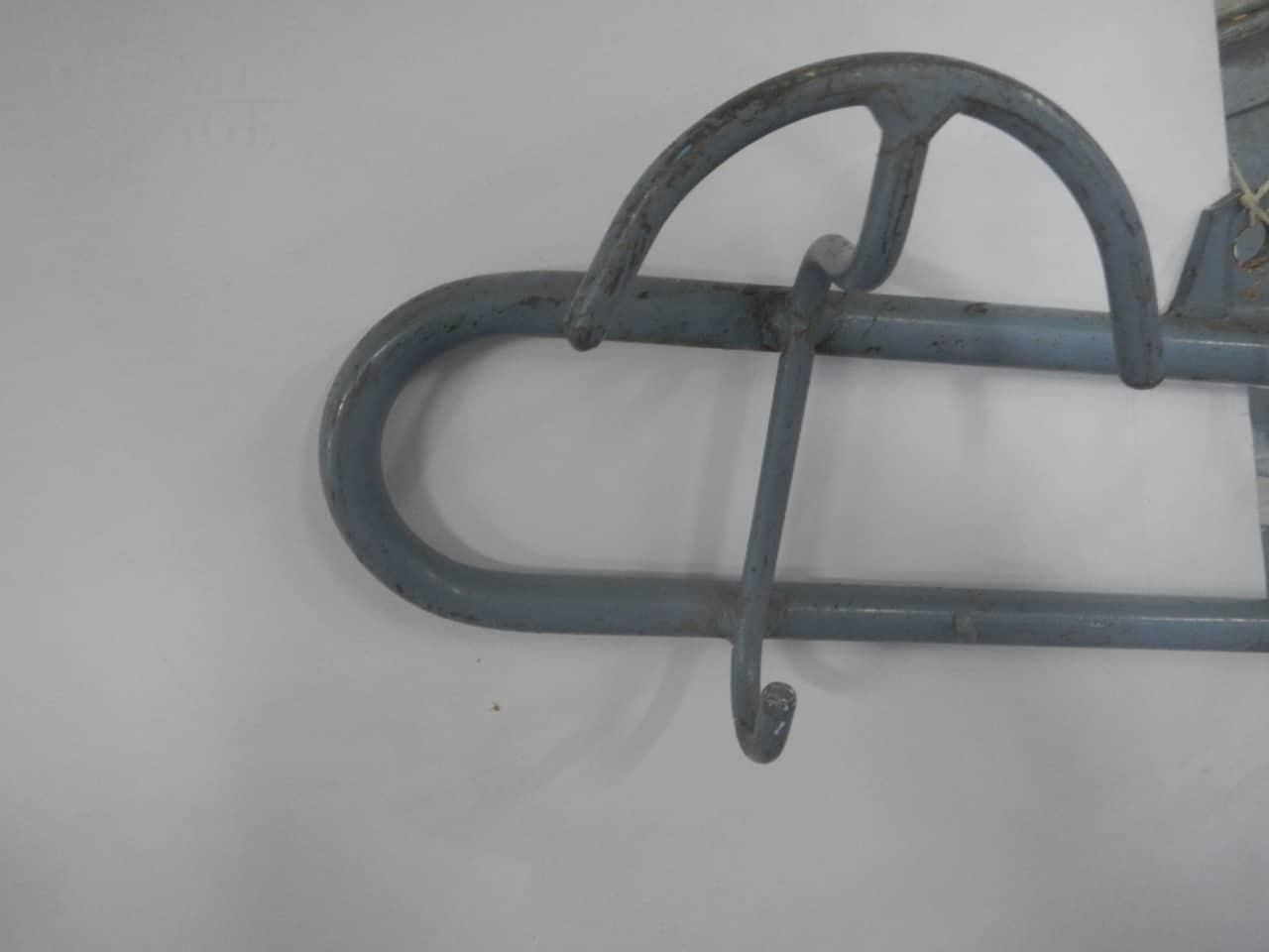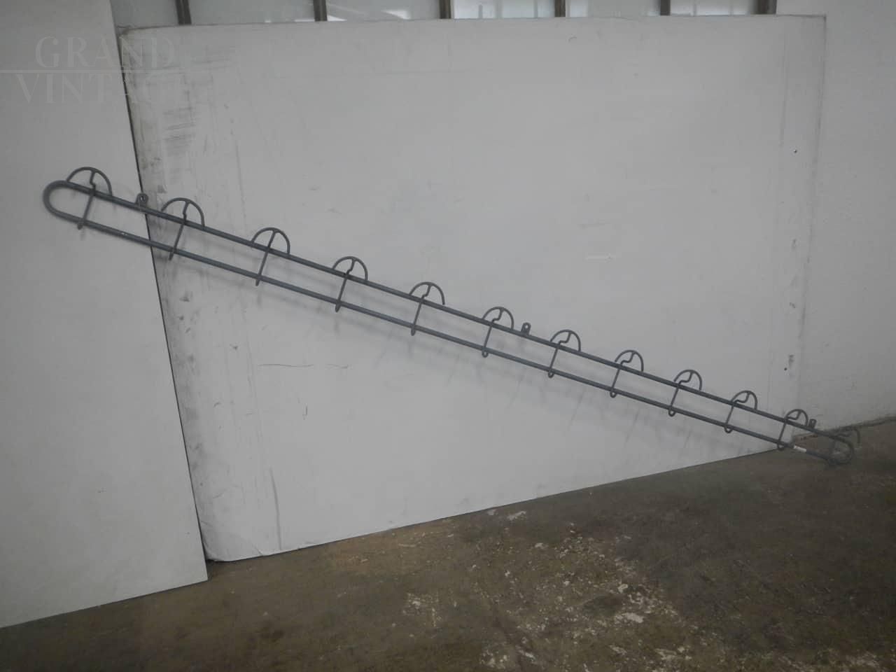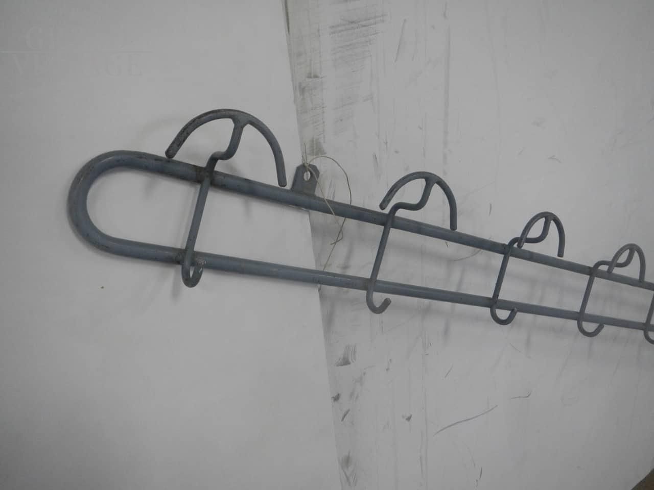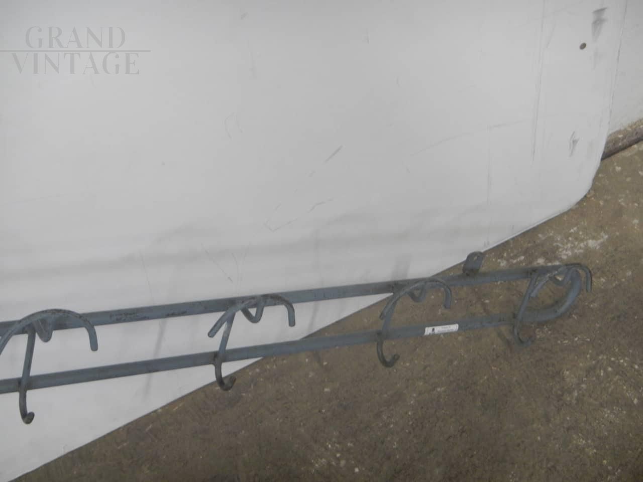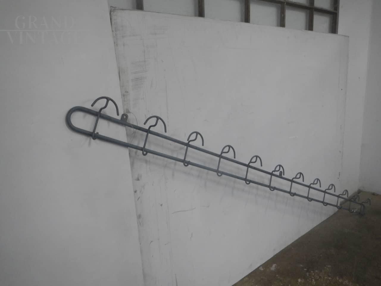 Large vintage 12-hooks wall coat rack in gray colored iron, in good condition, with natural signs of use. 2 pieces available, the price refers to the single piece.