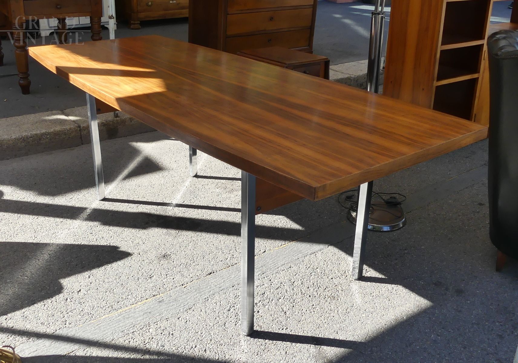 Large meeting table by Osvaldo Borsani, vintage from the 1960s, in steel and wood veneered in walnut, excellent condition.