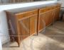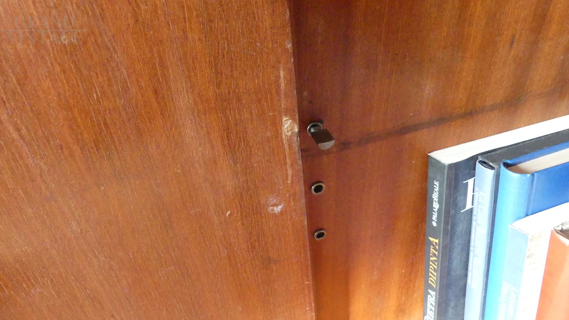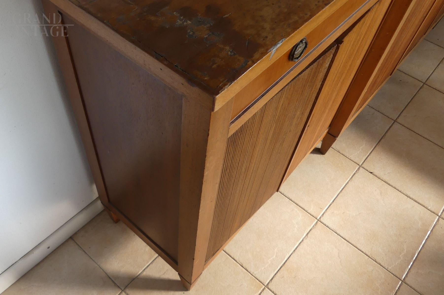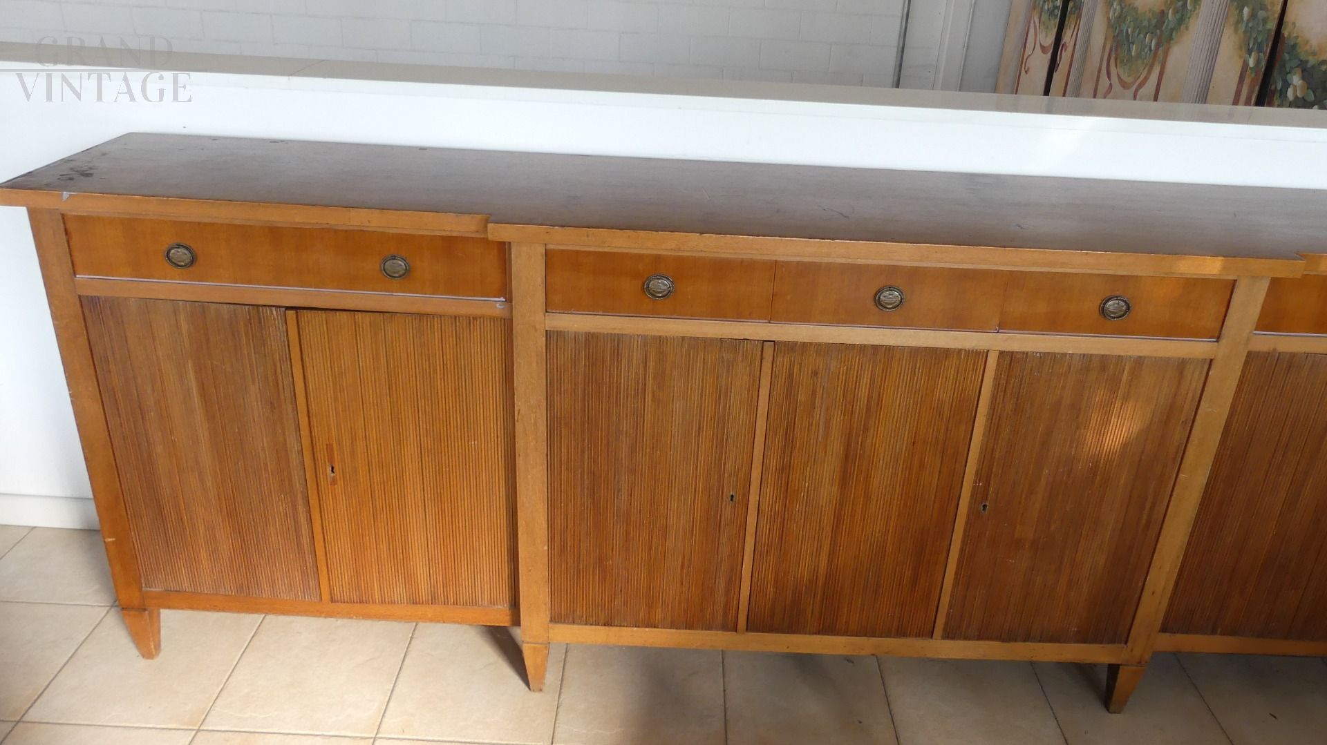 Large vintage sideboard, Italian mid-century from the 1960s, in mahogany wood, composed of 7 doors decorated with a beautiful knurling. In original condition, it has the natural signs of aging, with some stains on the top, as shown in photos.