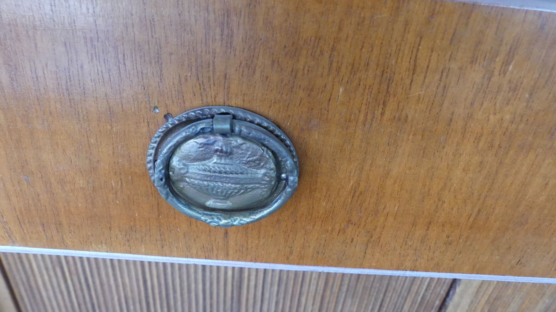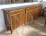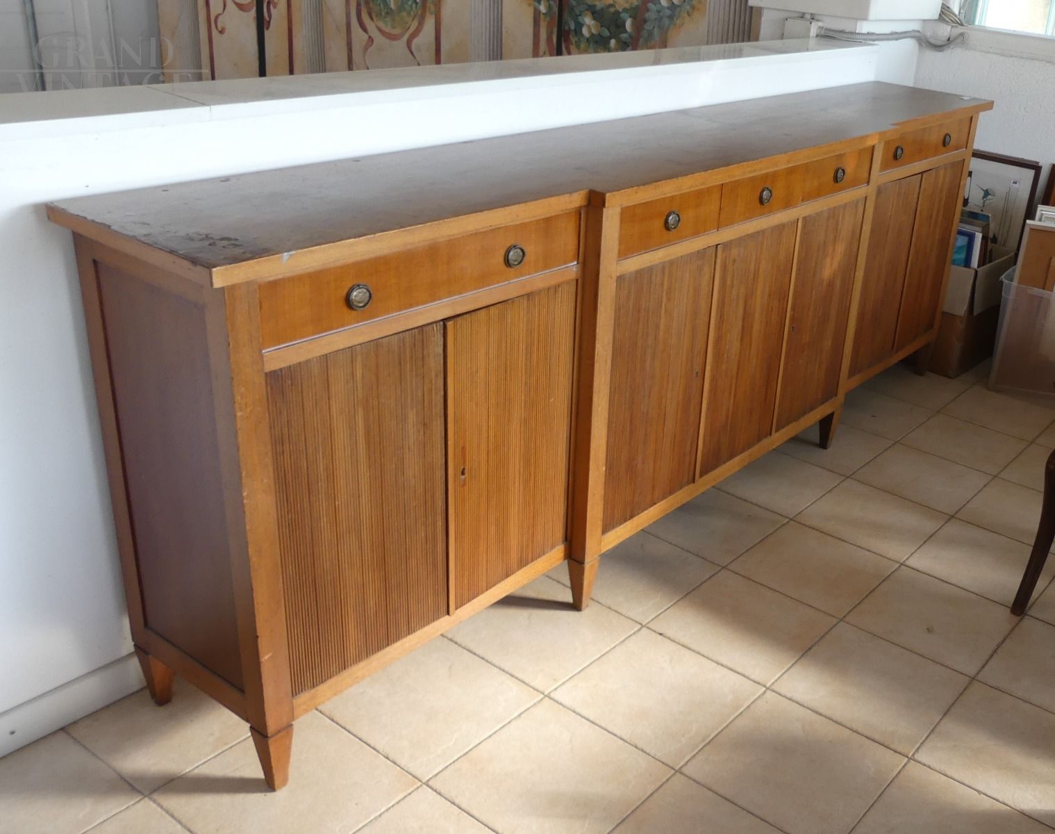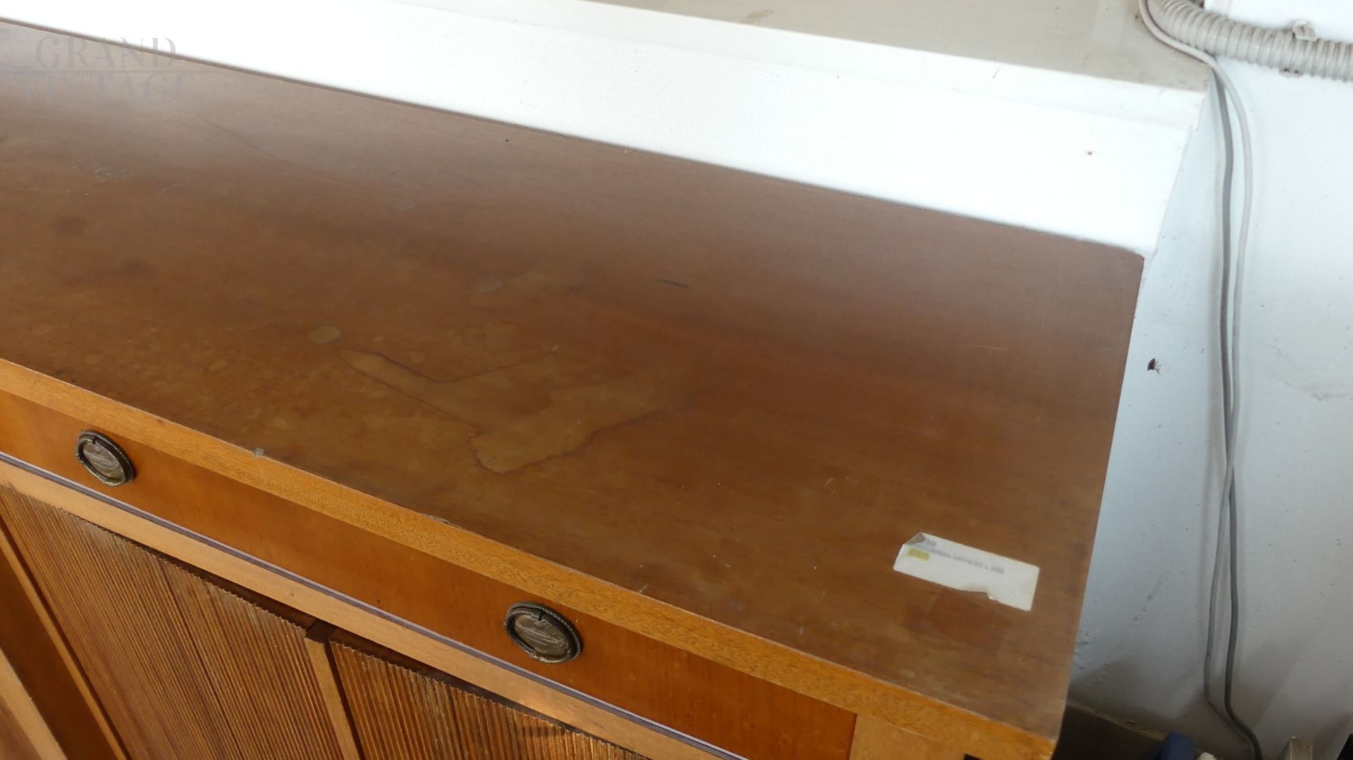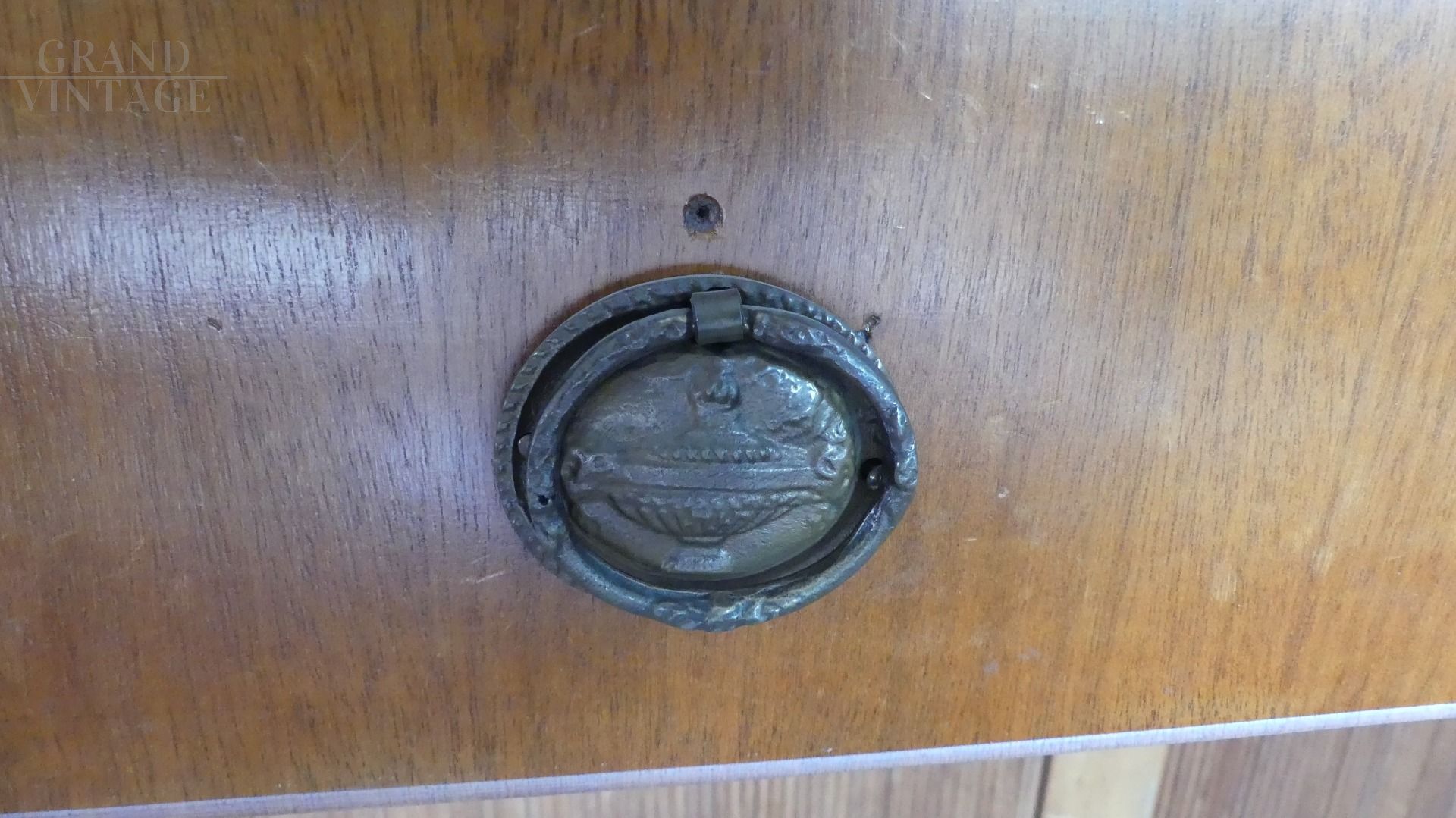 Large vintage sideboard, Italian mid-century from the 1960s, in mahogany wood, composed of 7 doors decorated with a beautiful knurling. In original condition, it has the natural signs of aging, with some stains on the top, as shown in photos.