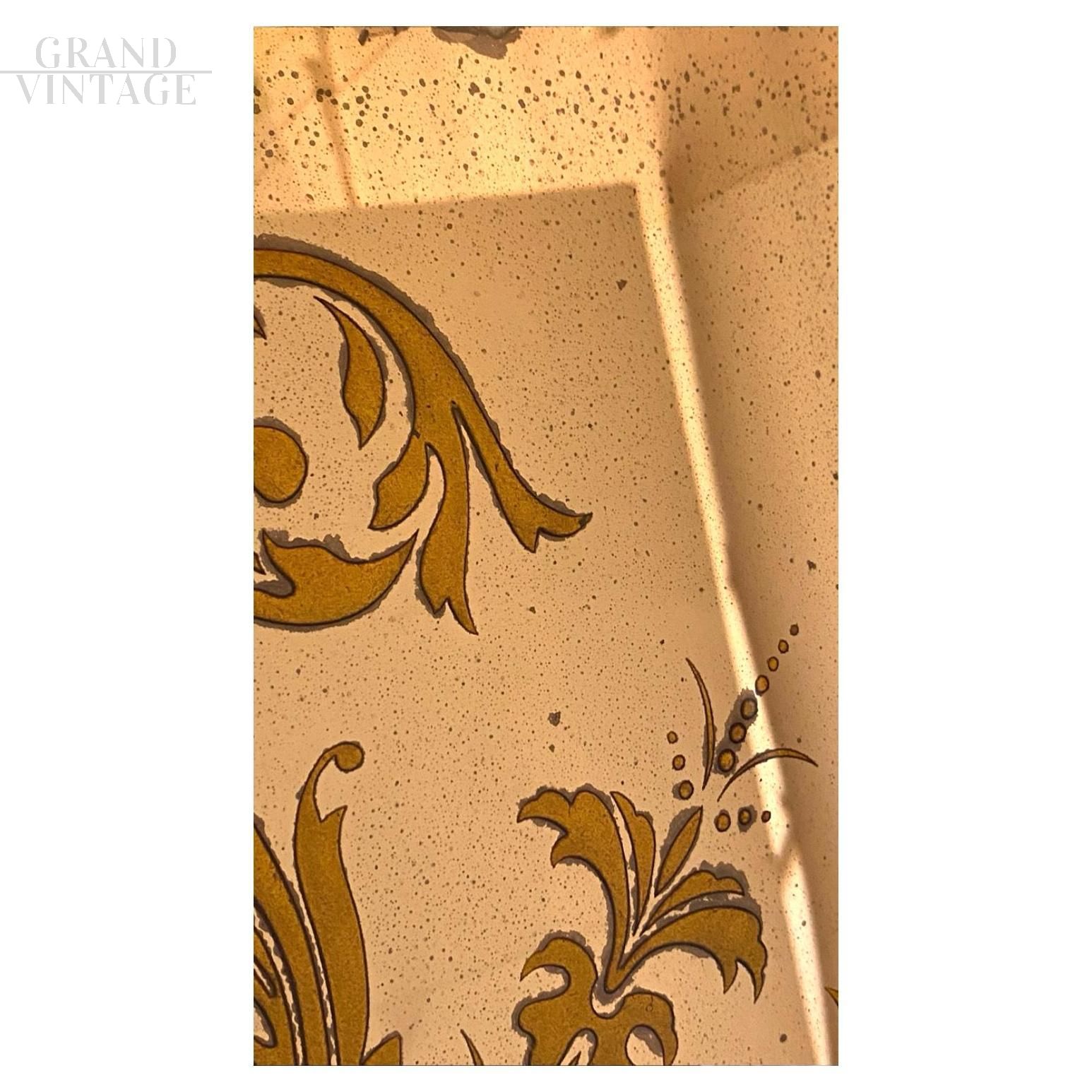 Large vintage yellow smoked mirror with floral decorations, 1960s