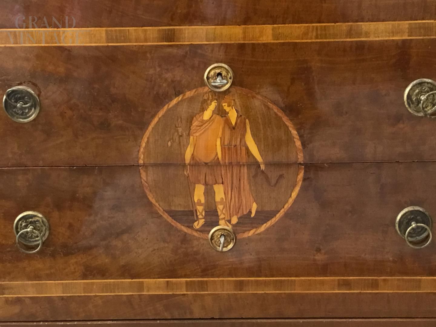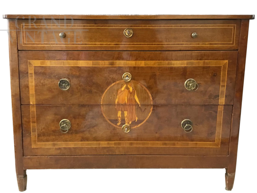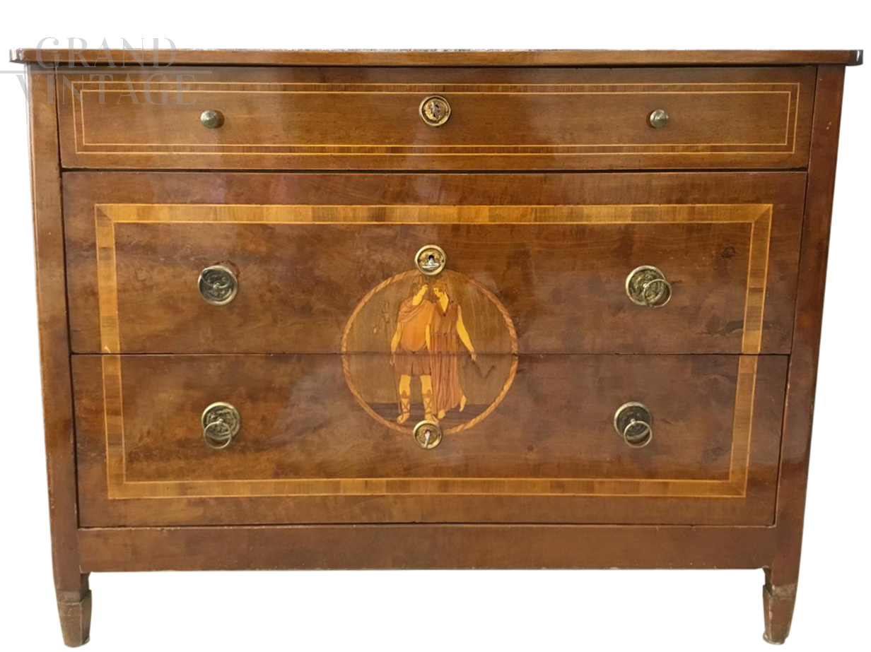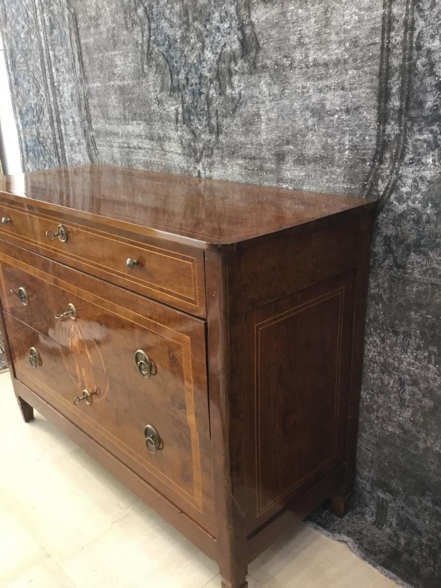 Lombard chest of drawers in walnut, late eighteenth century, with Maggiolini posthumous inlays.