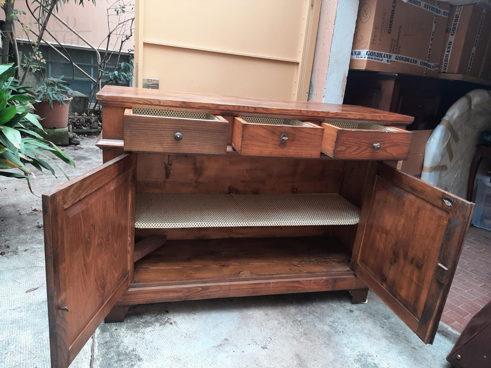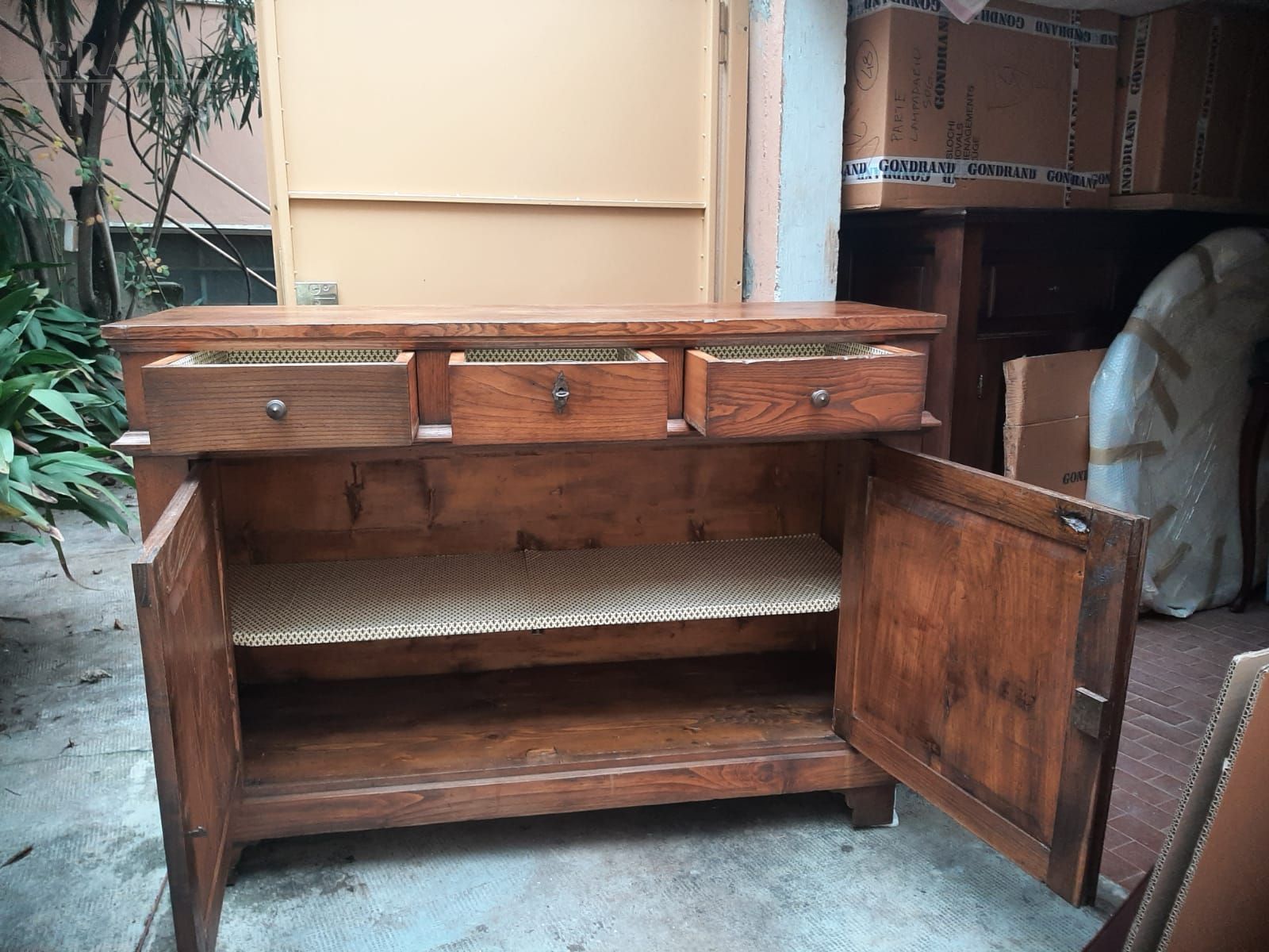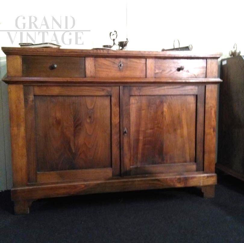Antique oak sideboard with three drawers, late 19th century, from Lombardy.