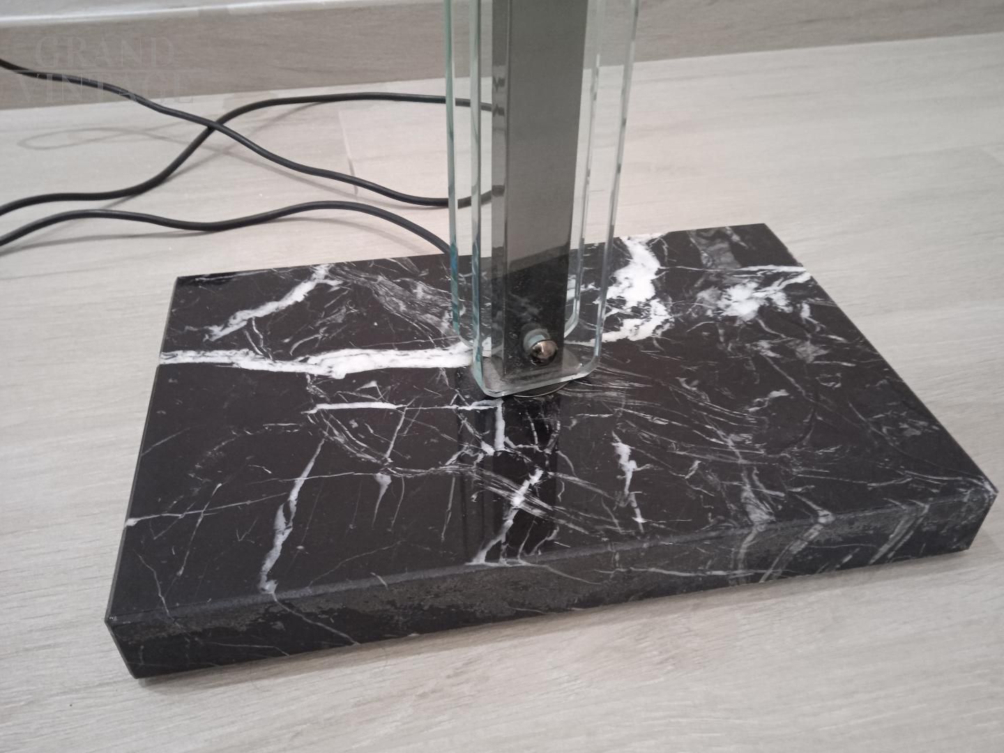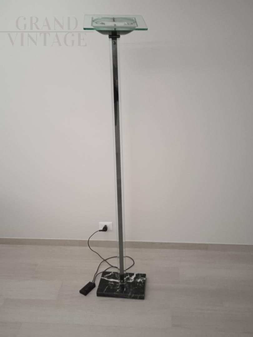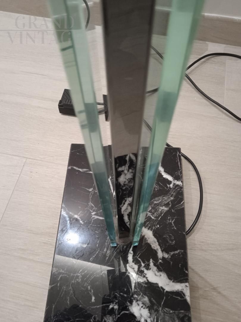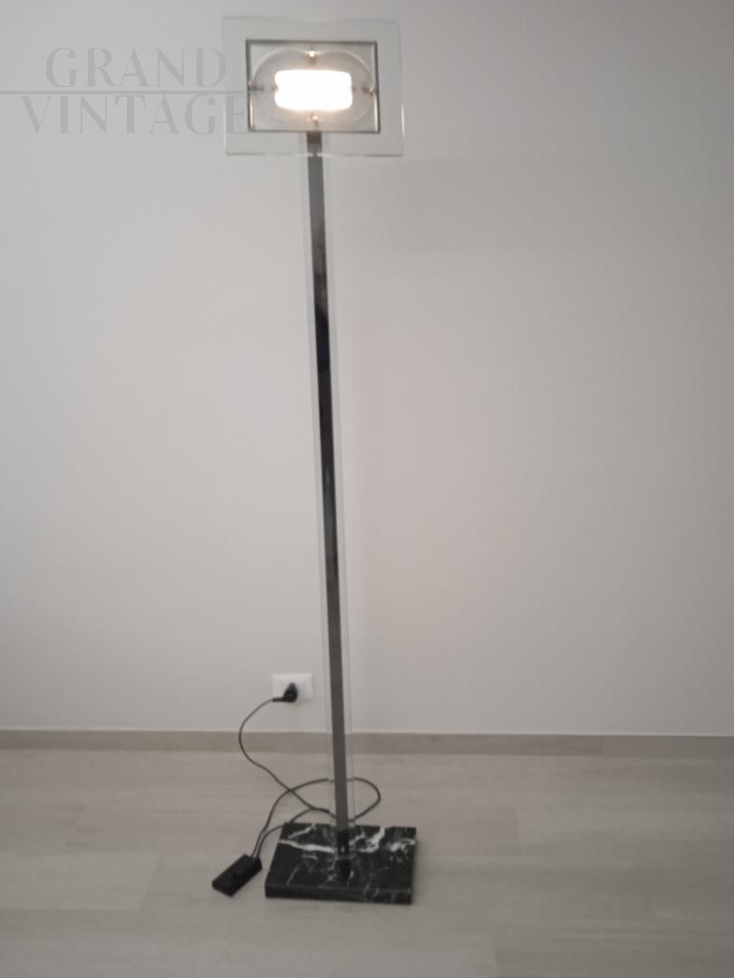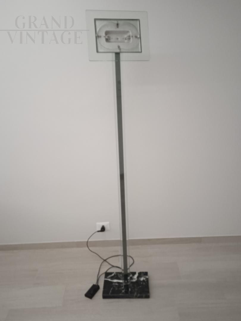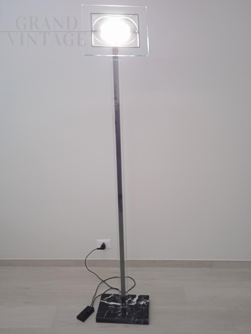 Vintage Relux Milano floor lamp model RL 101/5 in crystal, with stainless steel structure and black marble base, Italy 1980s. The lamp has a dimmable switch, the light beam can be directed upwards or laterally. In perfect working order and without defects or signs of wear.