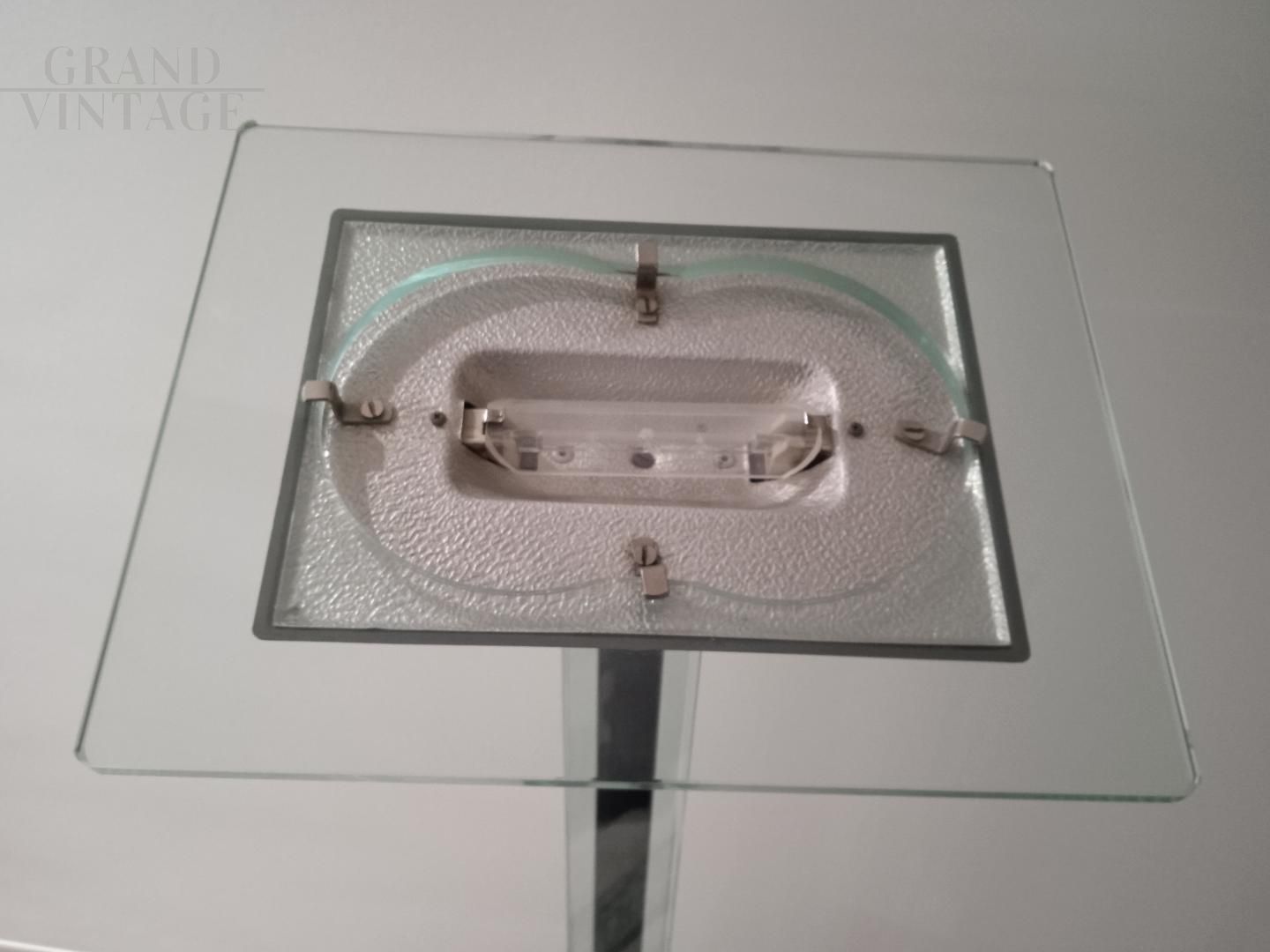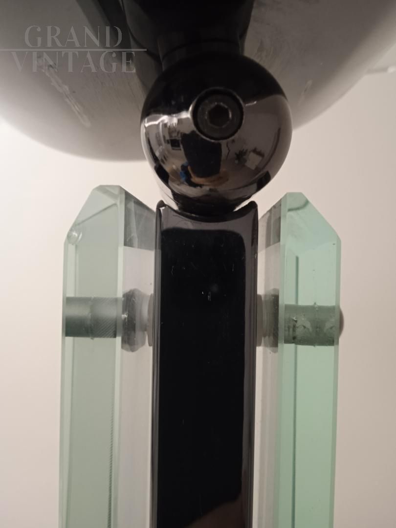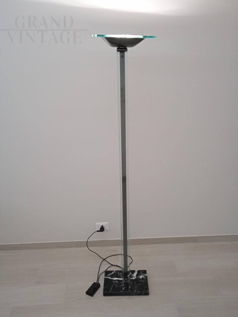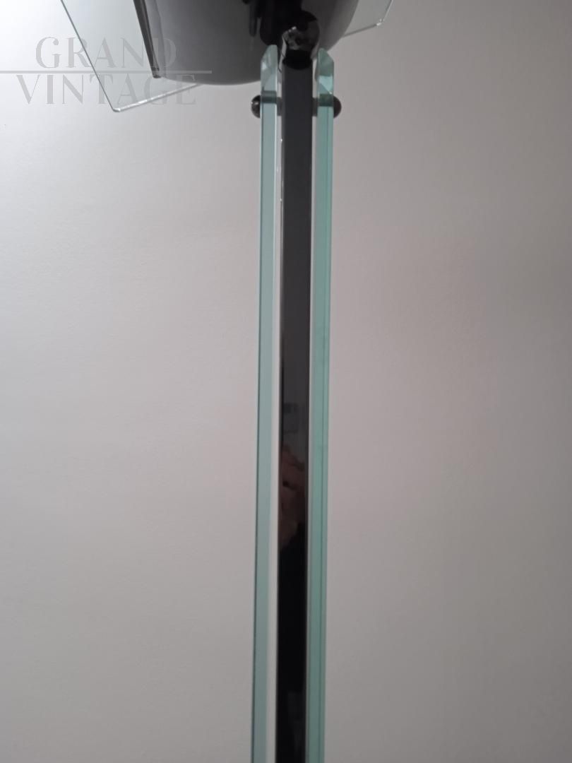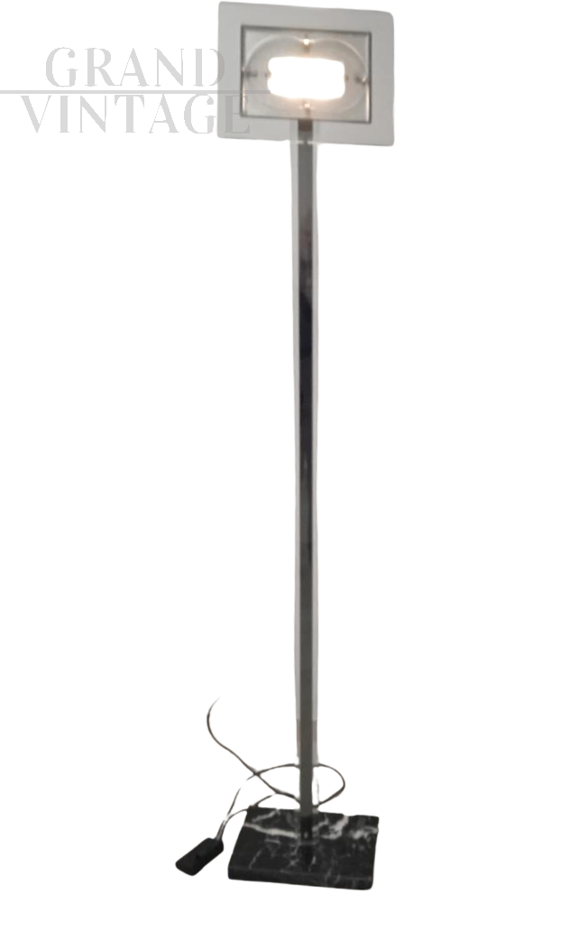 Vintage Relux Milano floor lamp model RL 101/5 in crystal, with stainless steel structure and black marble base, Italy 1980s. The lamp has a dimmable switch, the light beam can be directed upwards or laterally. In perfect working order and without defects or signs of wear.