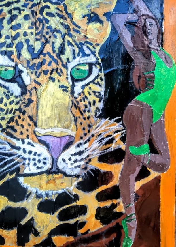 Leopard and Dancer, acrylic painting on canvas by Barbara Iori, 2025