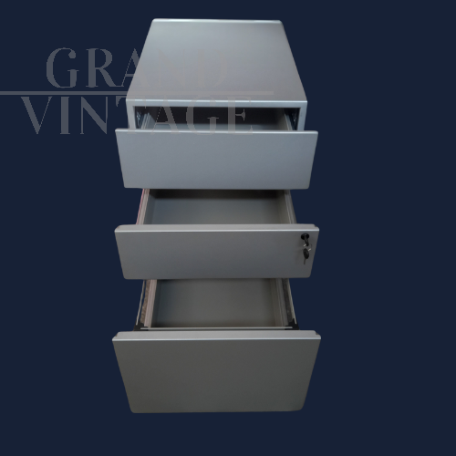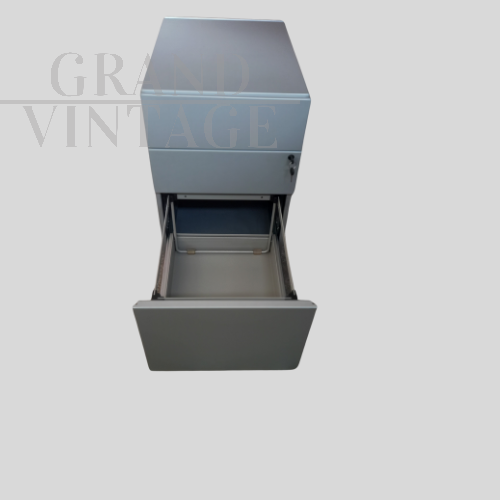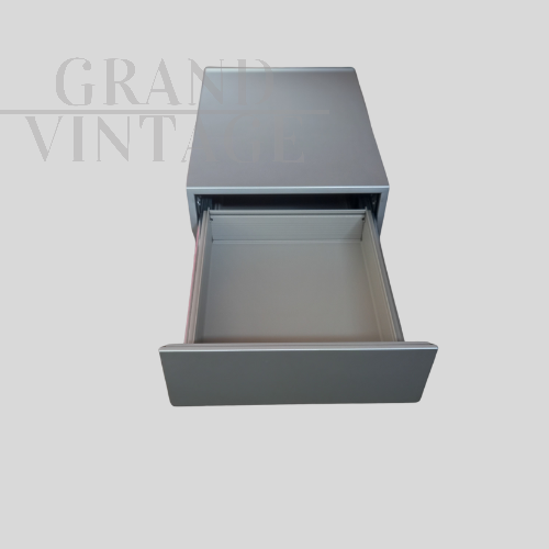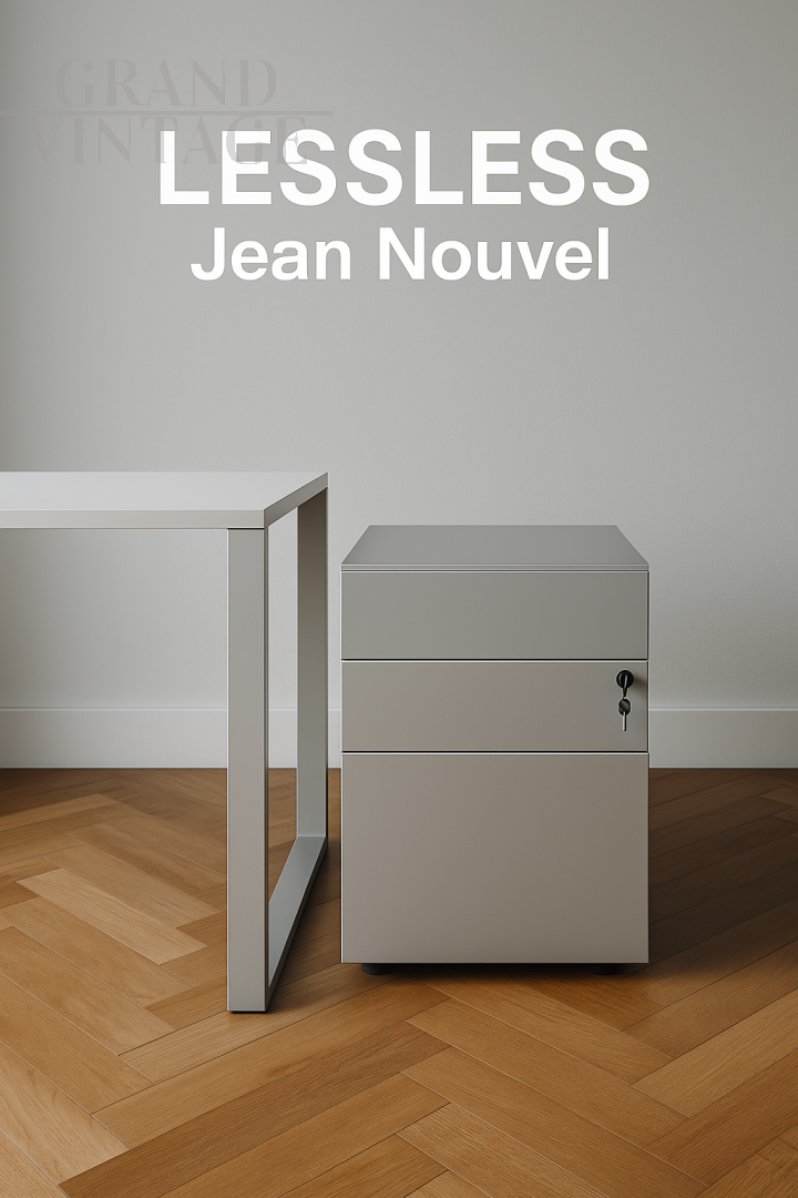 Elegant, minimalist, and extraordinarily functional. The LessLess drawer unit designed by Jean Nouvel for Unifor is an icon of contemporary design: a perfect balance between architectural rigor and discreet technology. Crafted entirely of aluminum, this three-drawer chest—one designed for filing—combines visual lightness and solid construction. The top drawer features a key lock, while the back features a fold-down back panel for neat cable management. Clean lines, compact surfaces, and a timeless aesthetic: Jean Nouvel's design vision is fully reflected in this piece, where every detail is designed to blend functionality and style, without sacrificing elegance. The piece bears no visible branding.