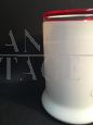 White table lamp with an elegant double red border, classic of the Leucos company. Lamp with the original Leucos sticker. Totally made of glass, neither cracked nor scored glass. Black plastic bulb holder. Lampholder E14.
