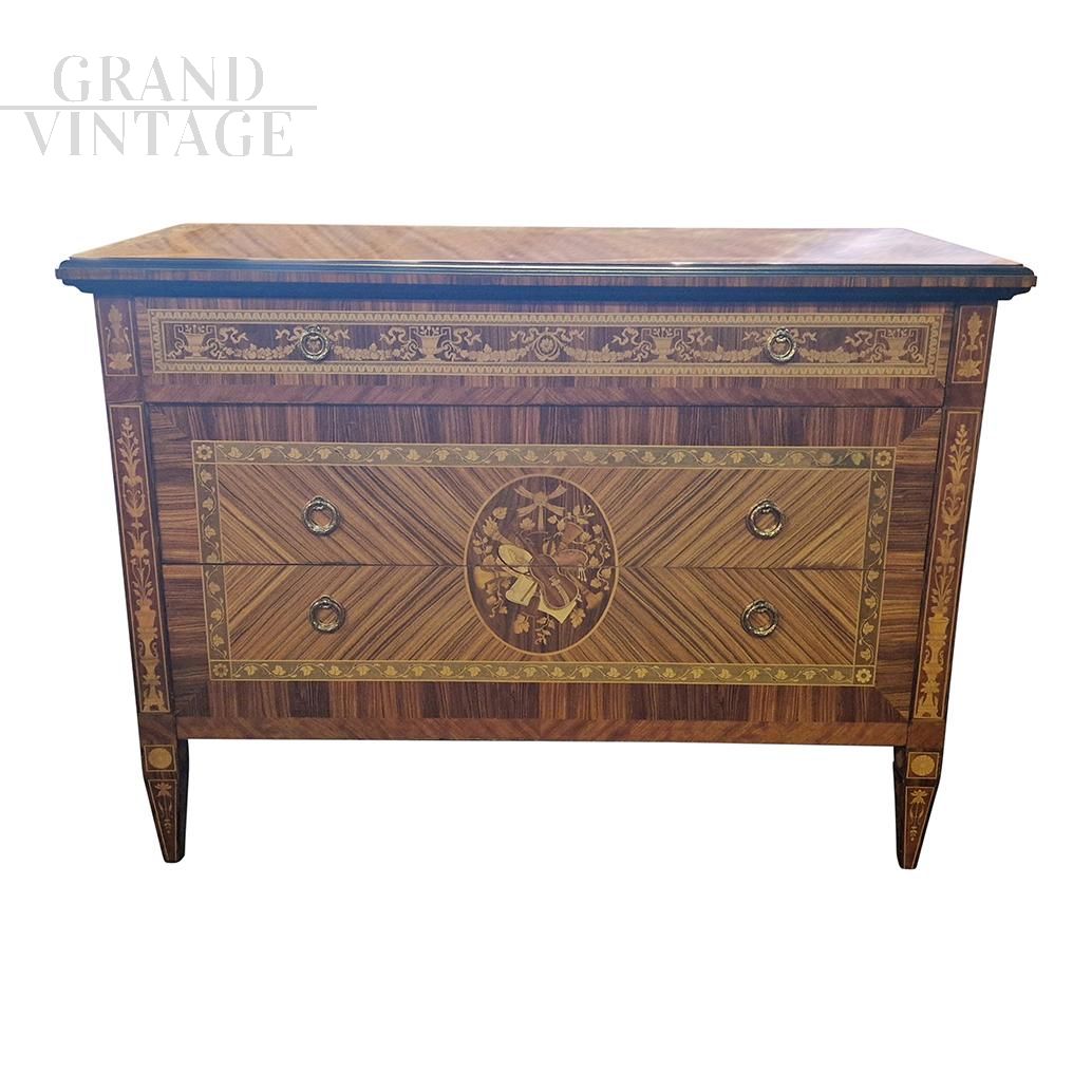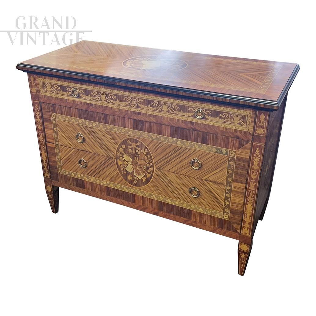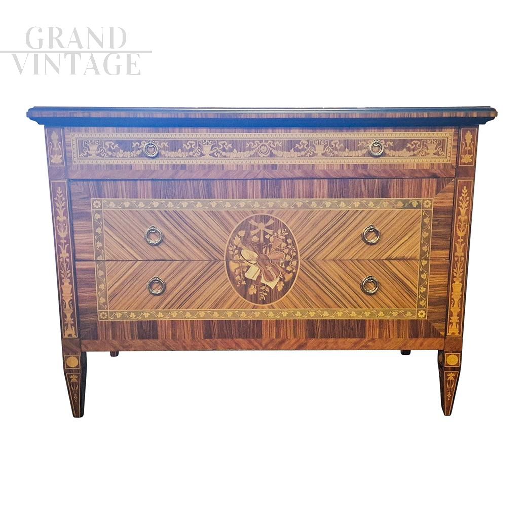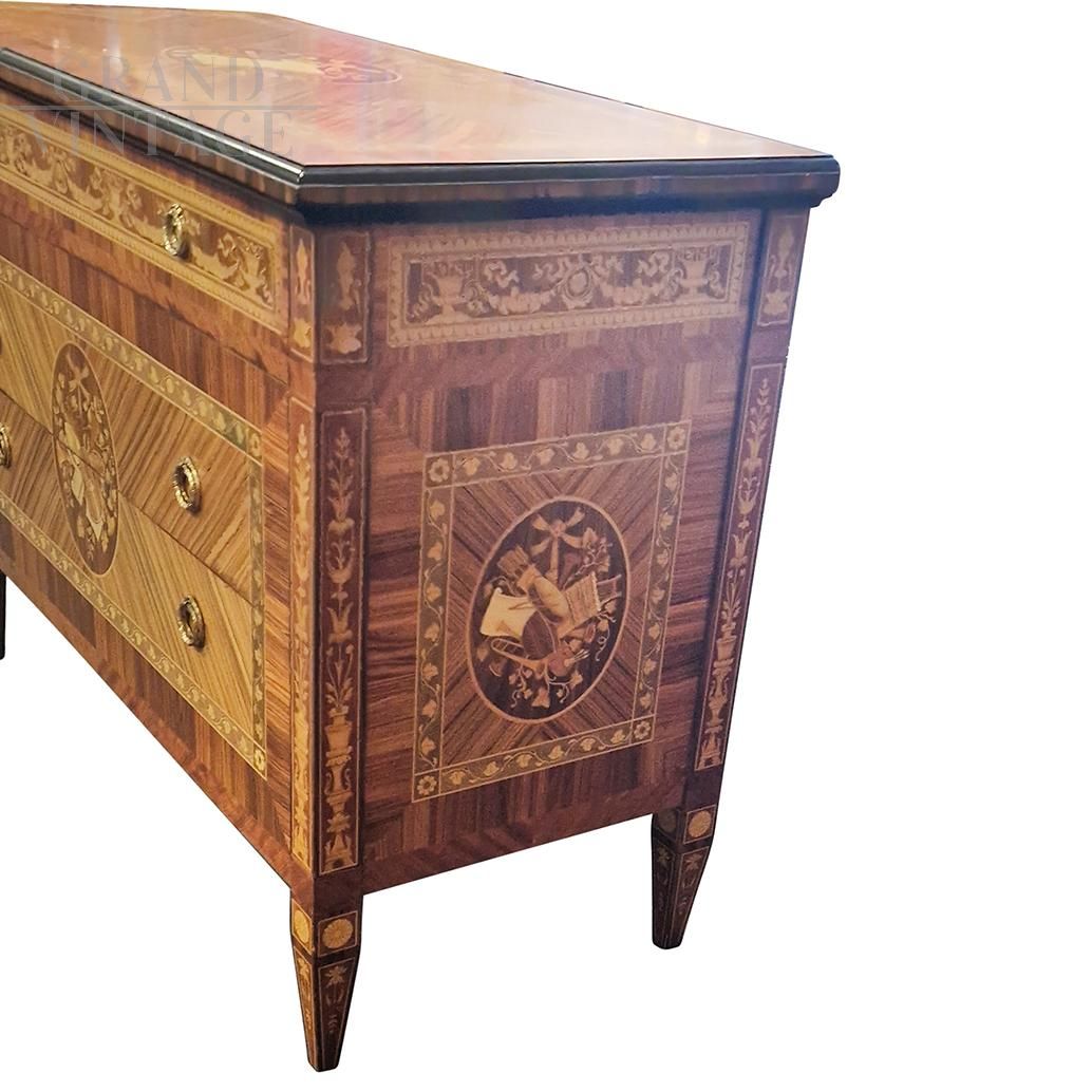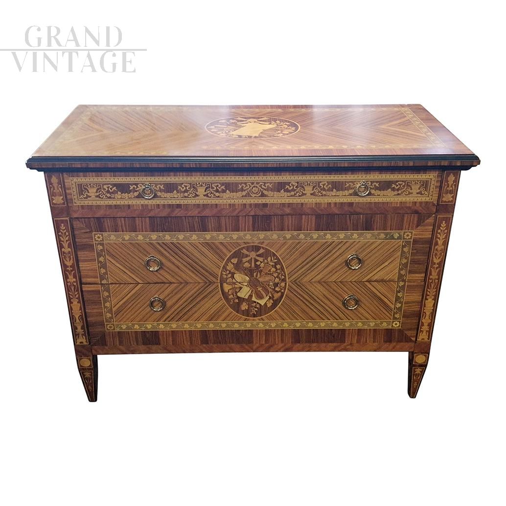Lombard chest of drawers in antique Louis XVI style with musical inlays