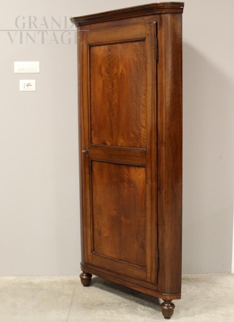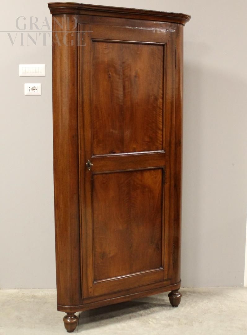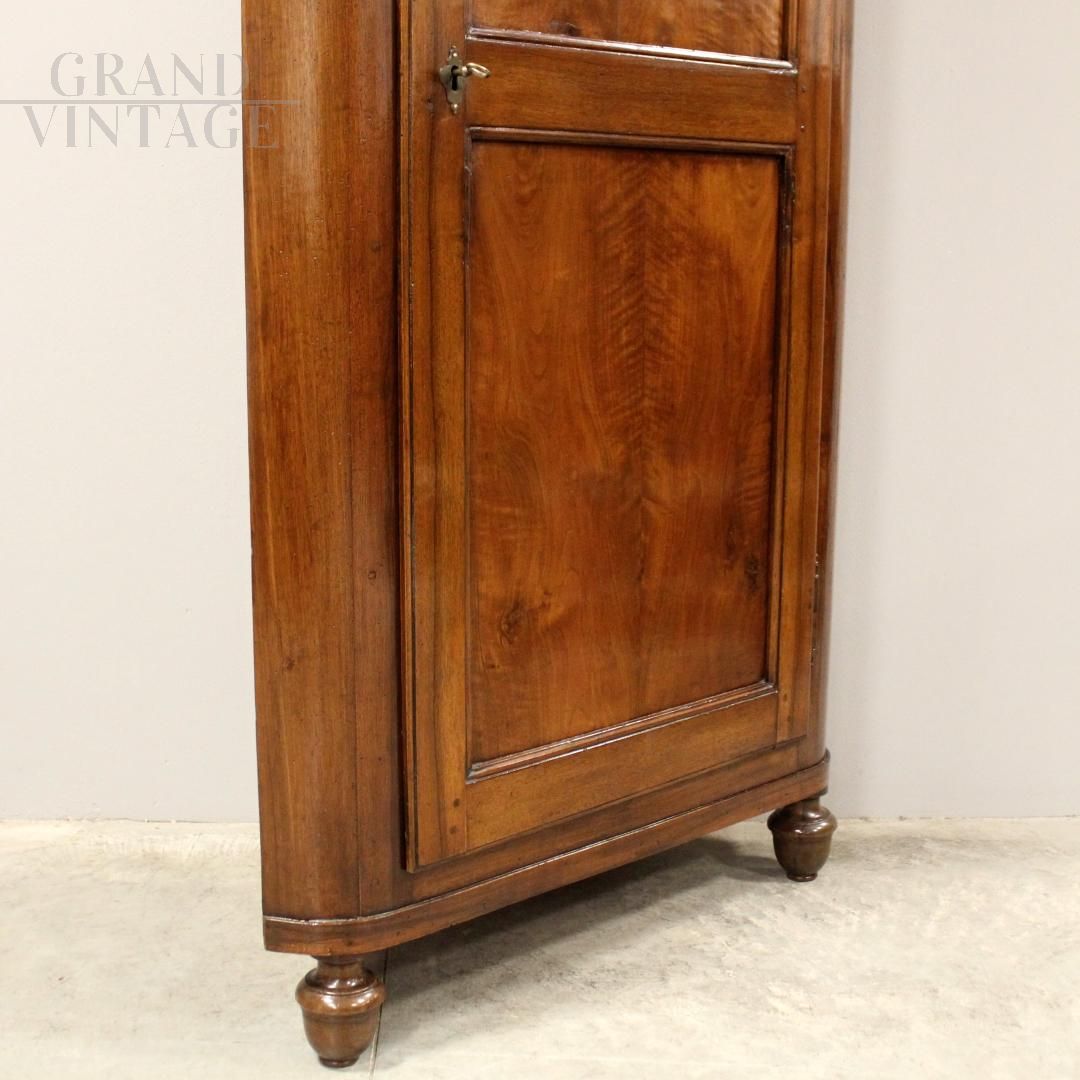 Louis Philippe cantonal corner unit in walnut, 19th century Italy