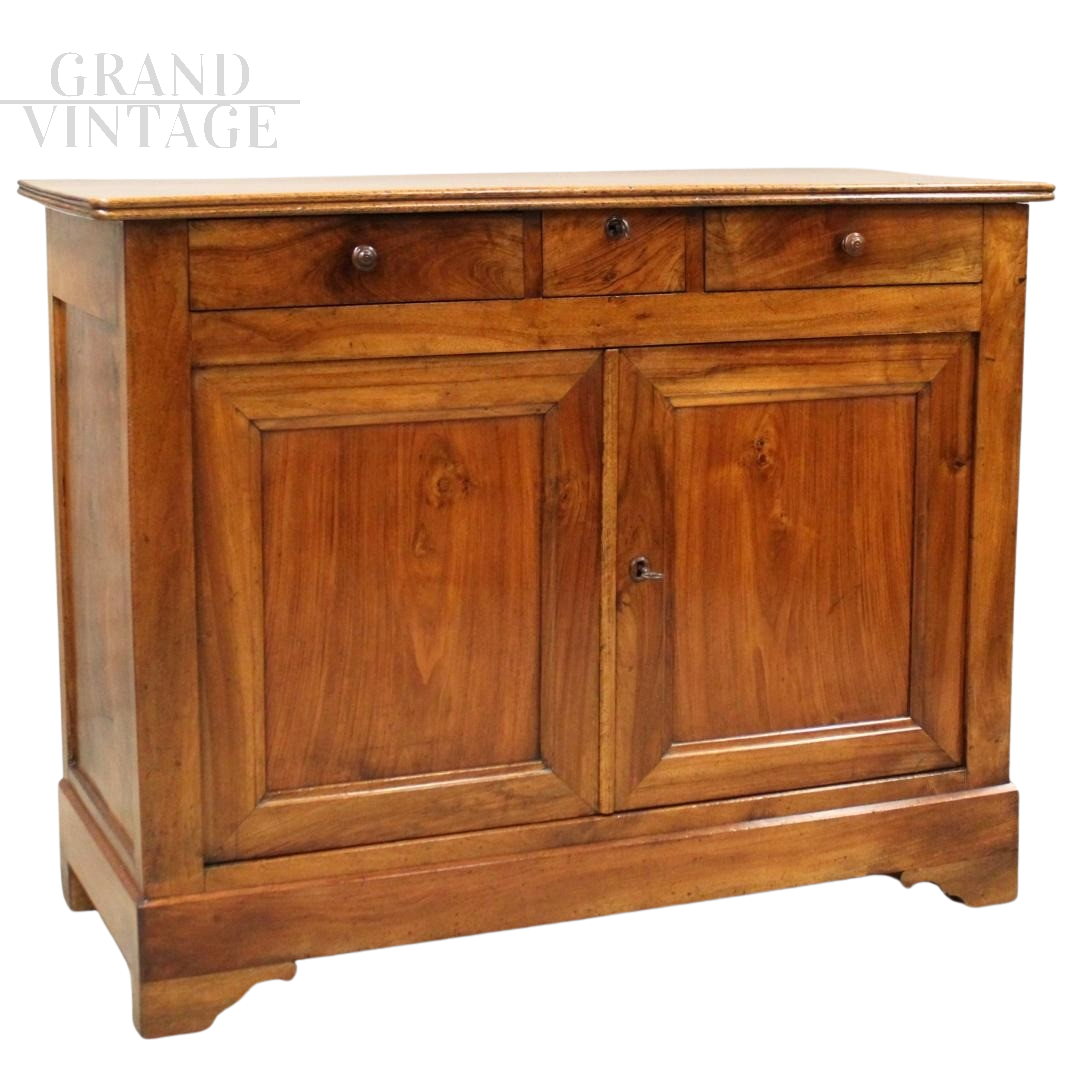 Antique sideboard from the Louis Philippe era in solid walnut from the 19th century, restored.