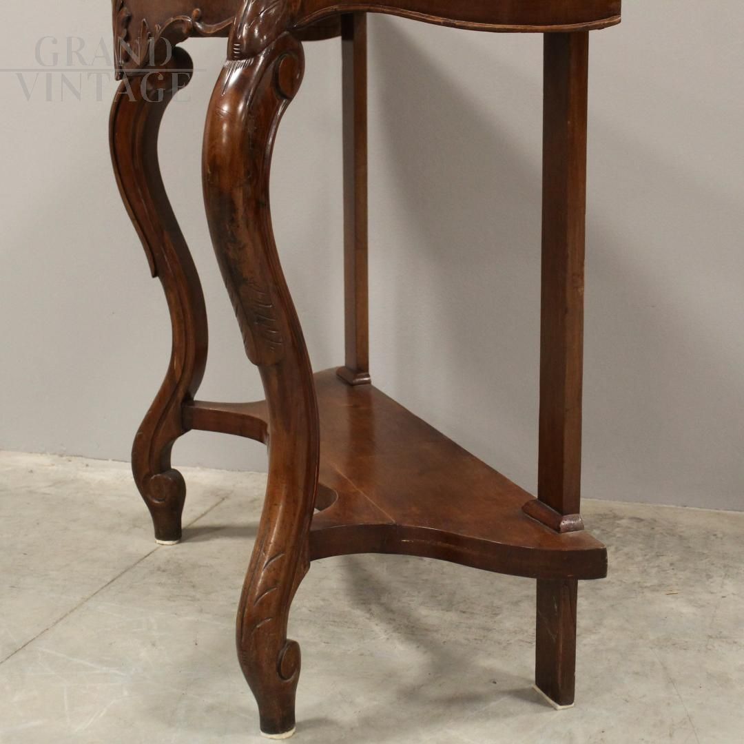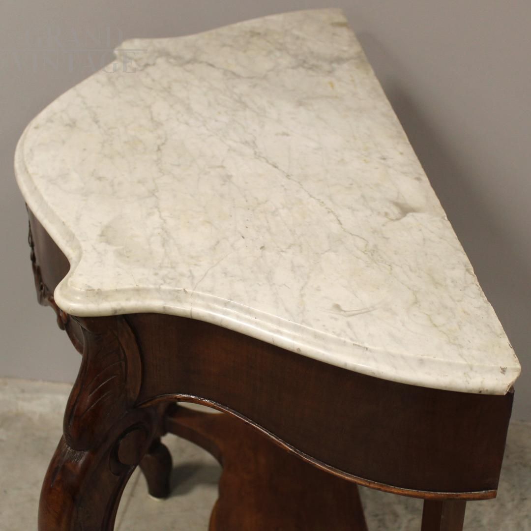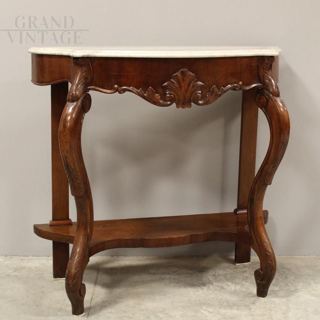 Louis Philippe walnut console with Carrara marble top, Italy 1800s