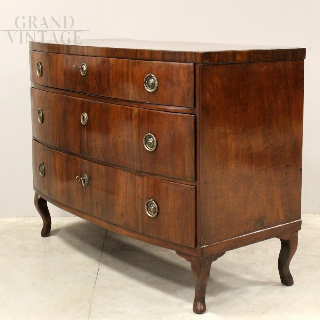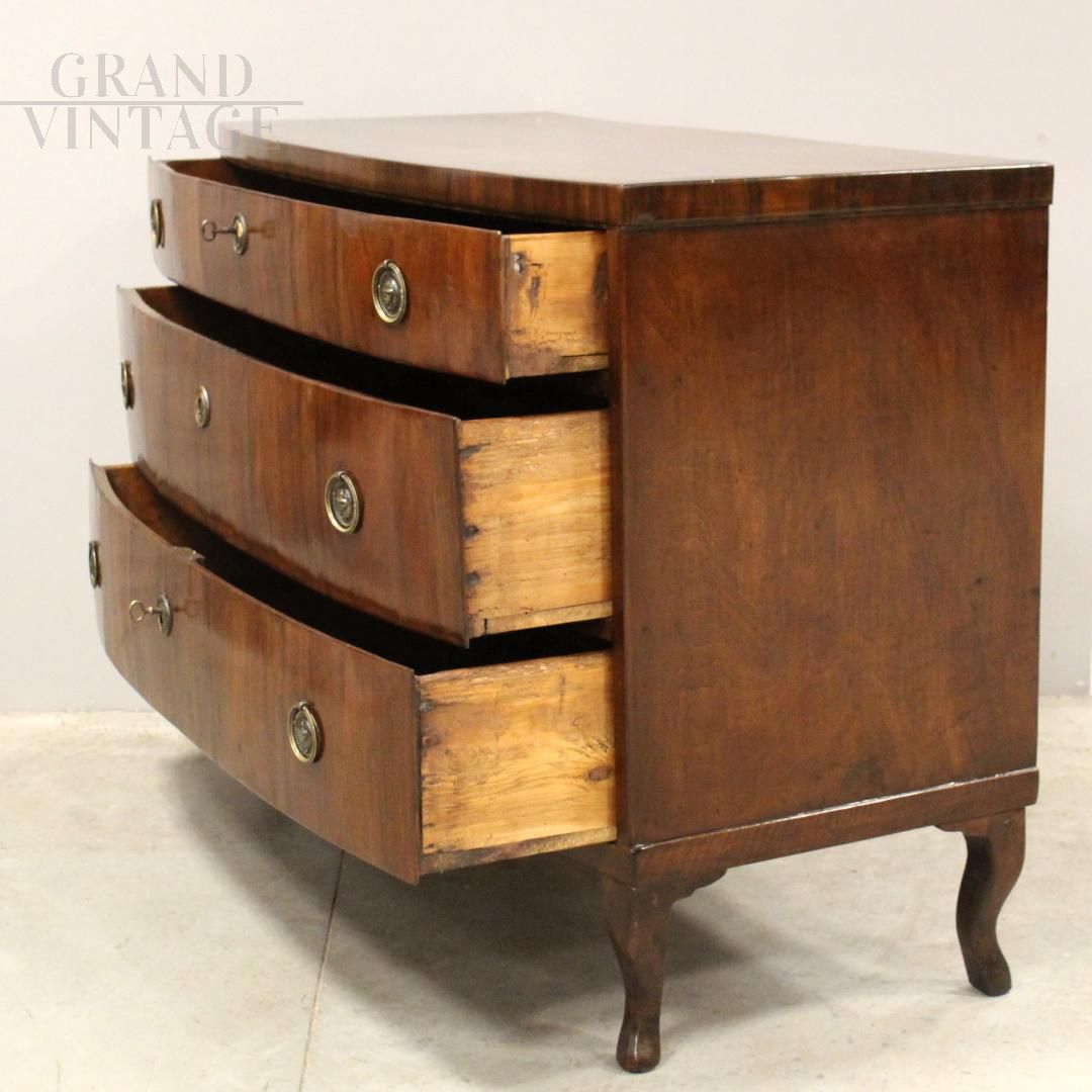 Antique chest of drawers from the Louis XV period in solid walnut and walnut veneer with three spacious drawers and beautiful wavy legs, coming from Italy - Veneto from the second half of the 18th century.