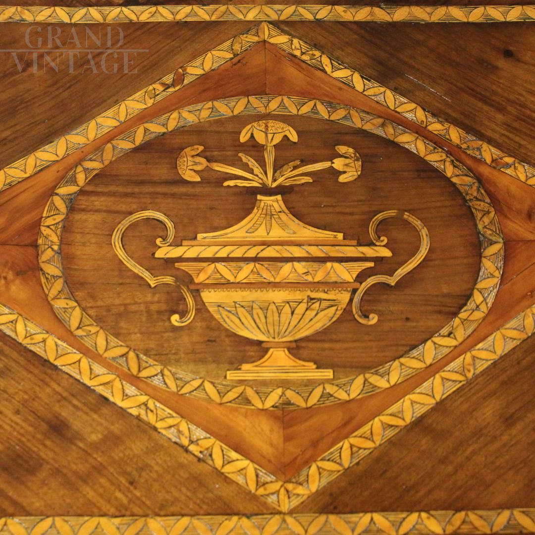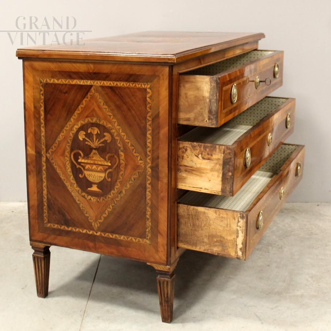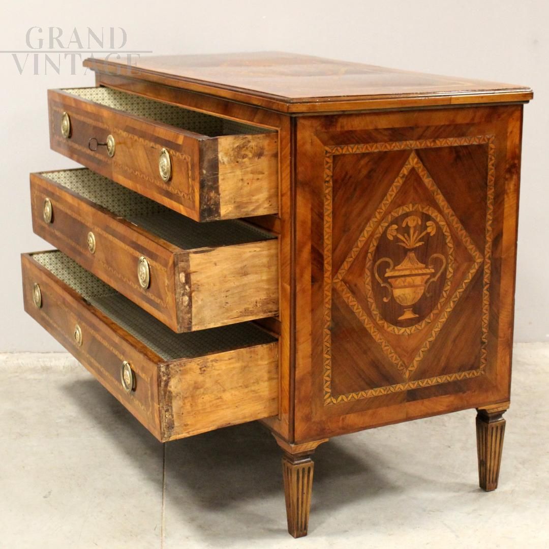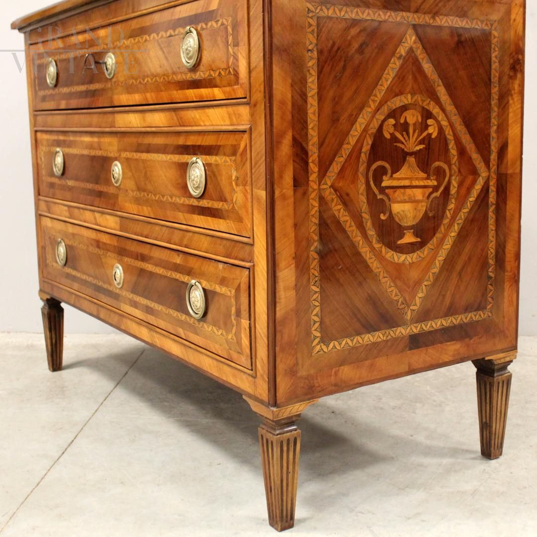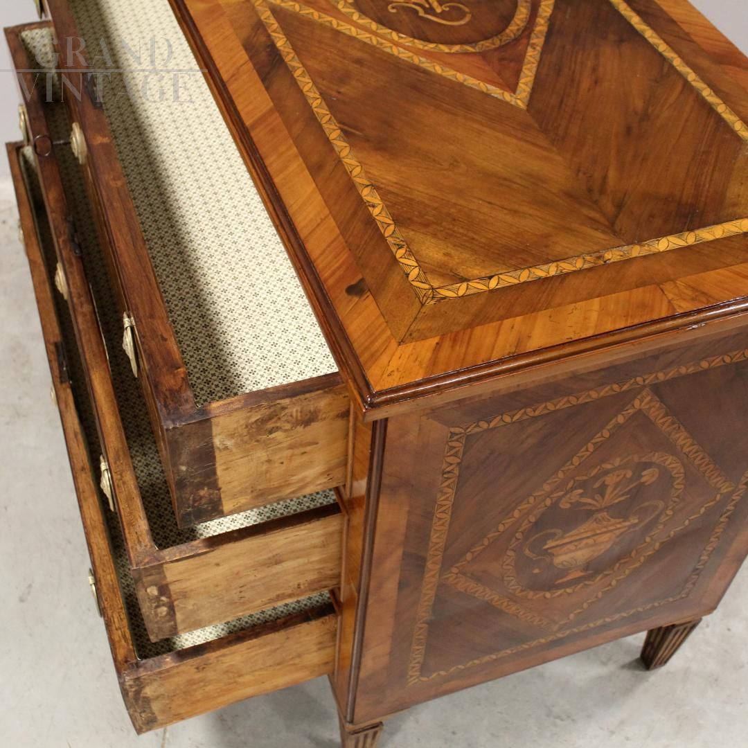 Louis XVI chest of drawers in inlaid walnut, Italy 18th century