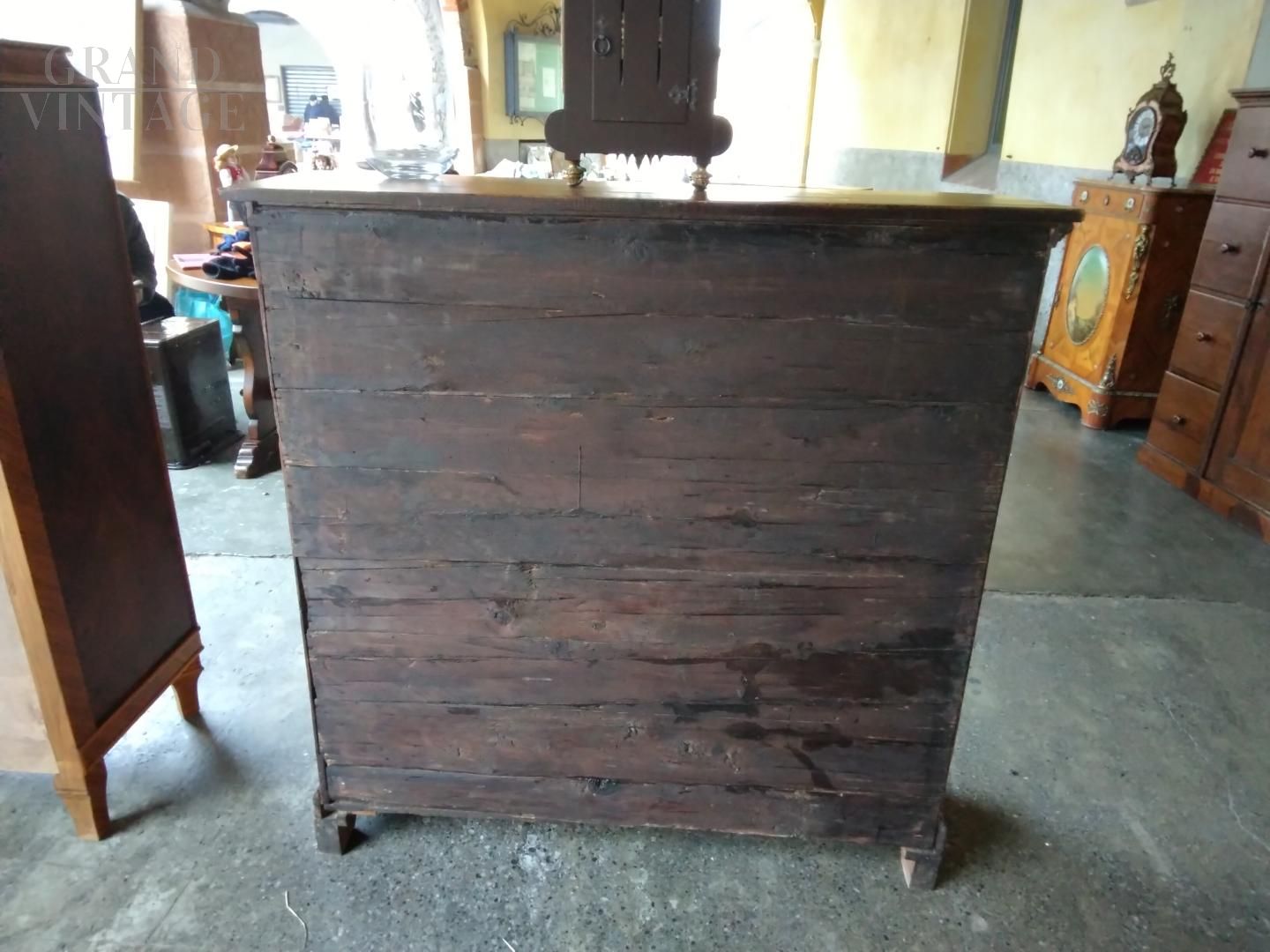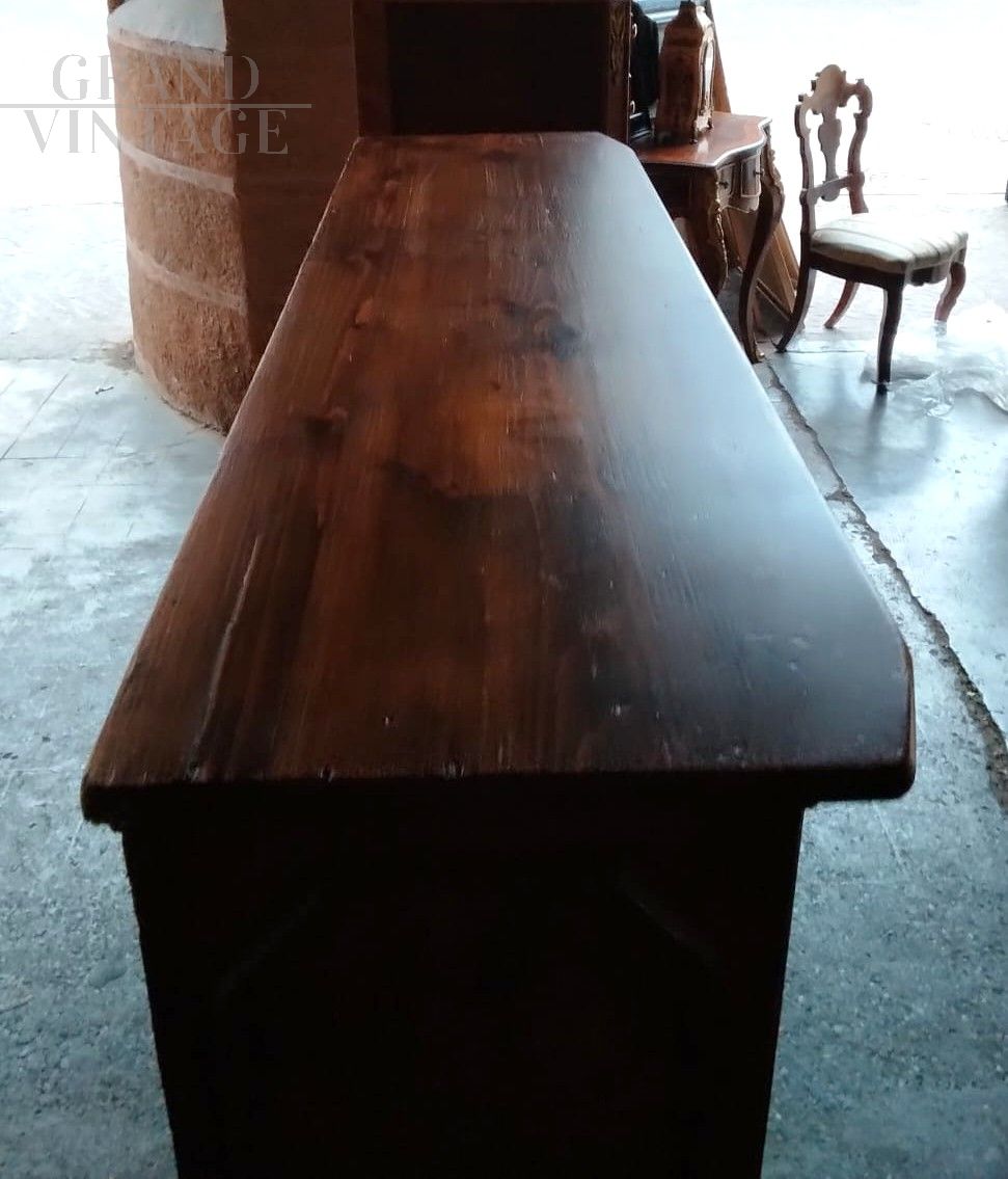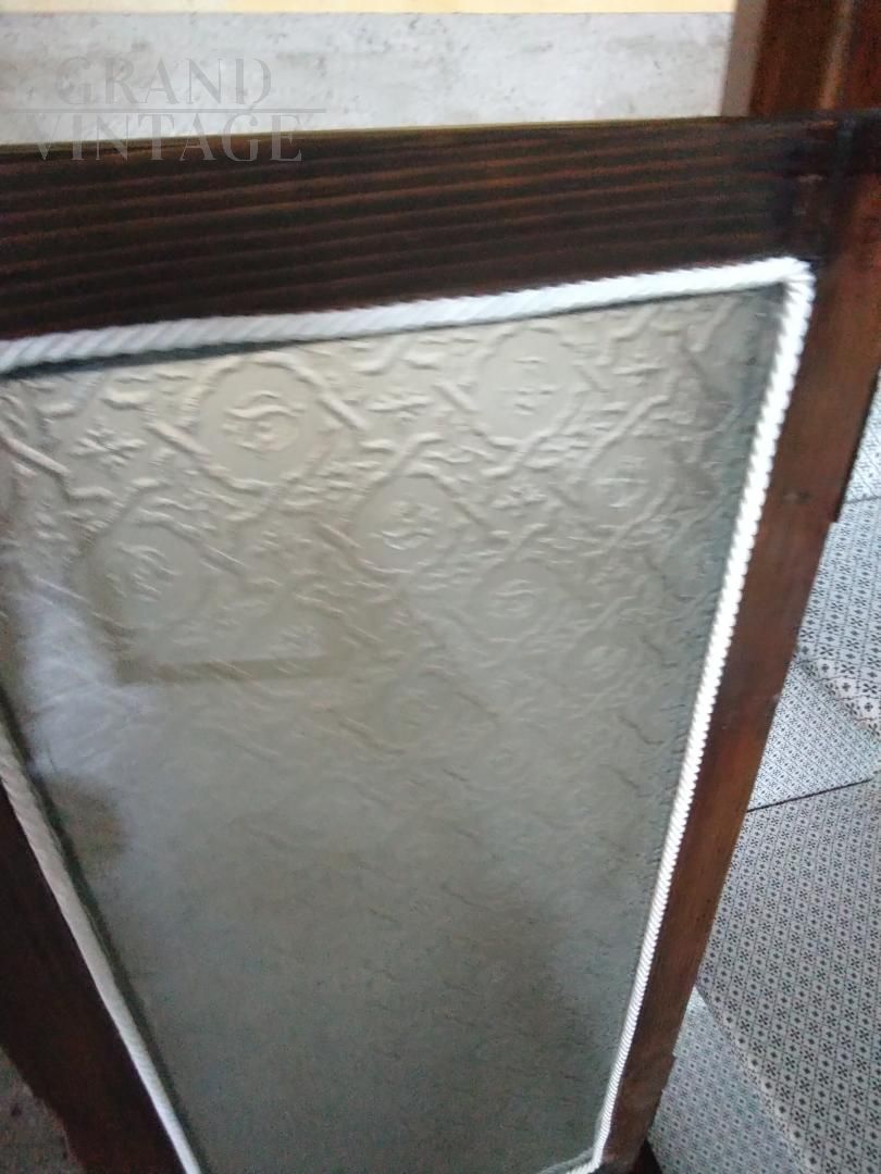 Small display cabinet sideboard from the early 1900s of Lombard origin, composed of two doors with original glass with a beautiful arch shape, the internal shelves are lined with waxed paper. Restored.
