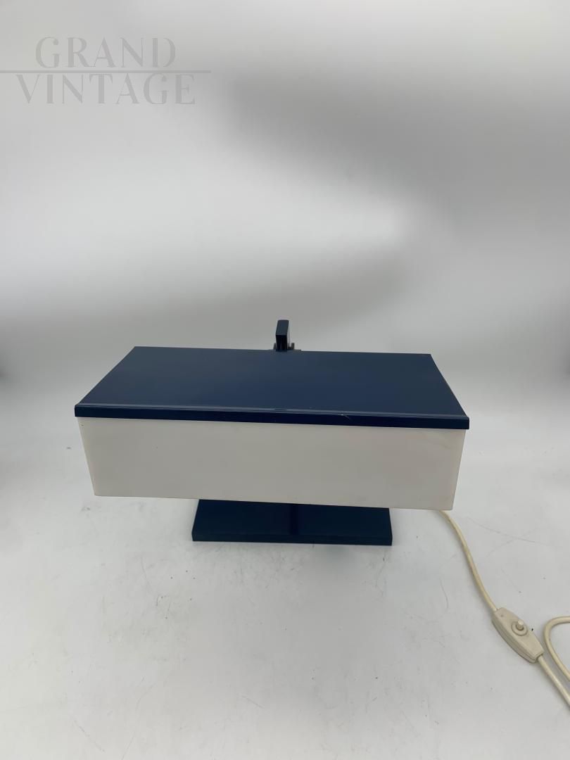 Table lamp designed by the Luci company with blue metal structure and rectangular white plastic lampshade, Italy 1970s. The lamp still has the original plug with the Luci brand, and still retains the original colors and white plastics. In good condition, with some natural signs of aging. Original and working electrical system.