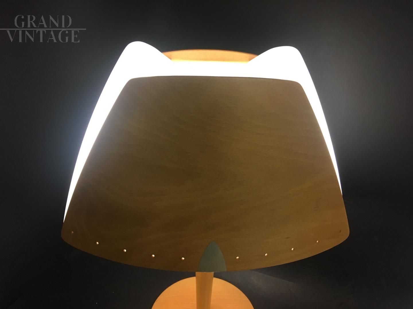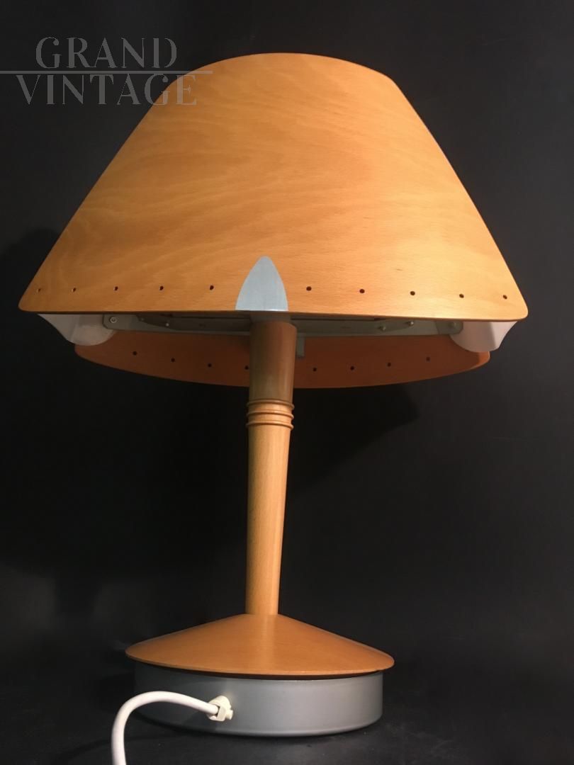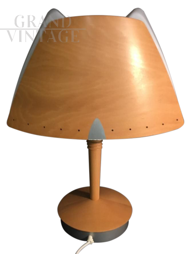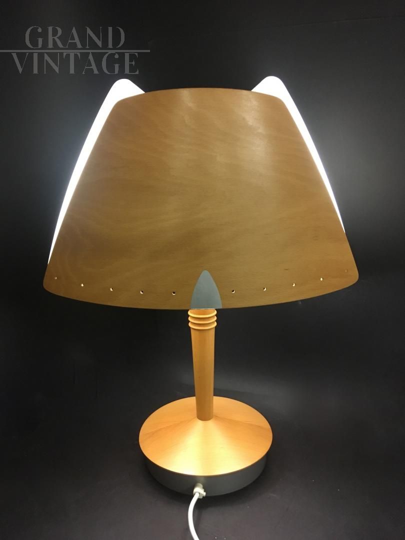 Lucid company lamp, with the original sticker inside. The outside of the lamp is made of wood, as well as the trunk. The upper plastic is in good condition. Internally it has 2 lamp holders, the lower base is in iron. Single, perfect for a bedside table.