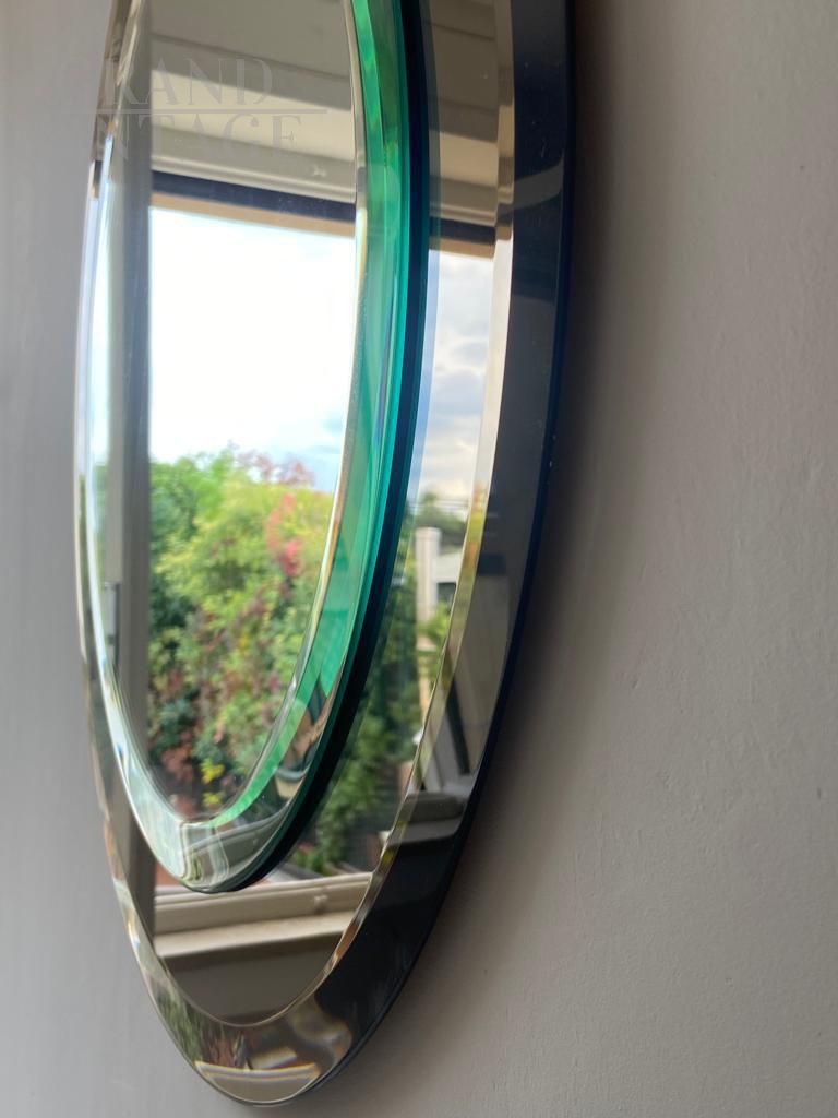 Lupi Cristal Luxor vintage round mirror in beveled crystal, Italy 1970s