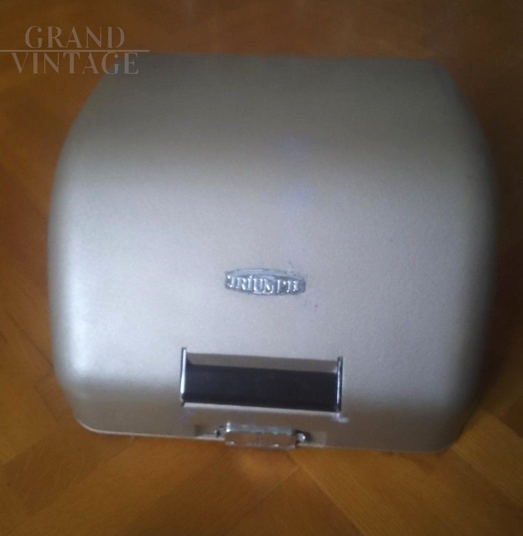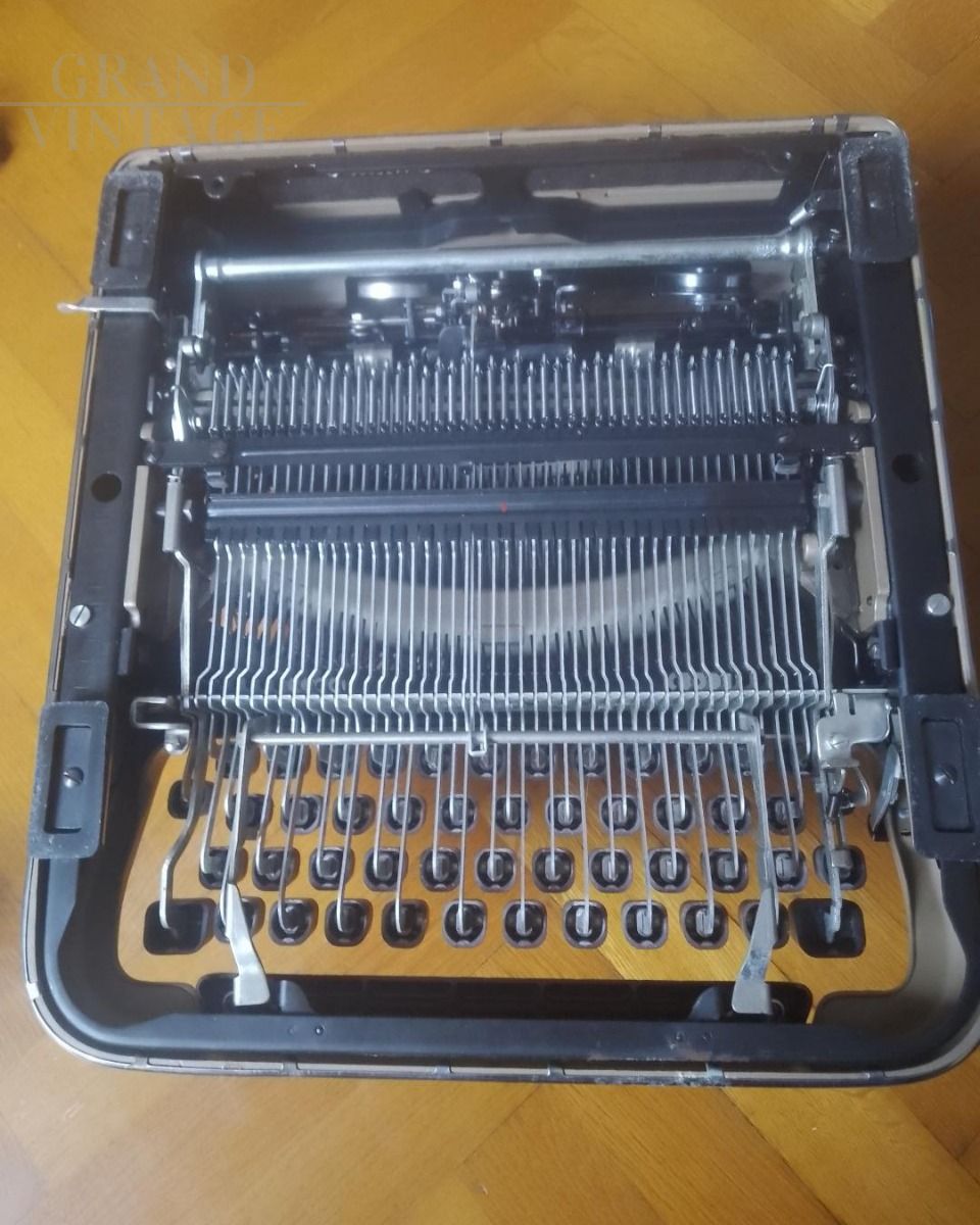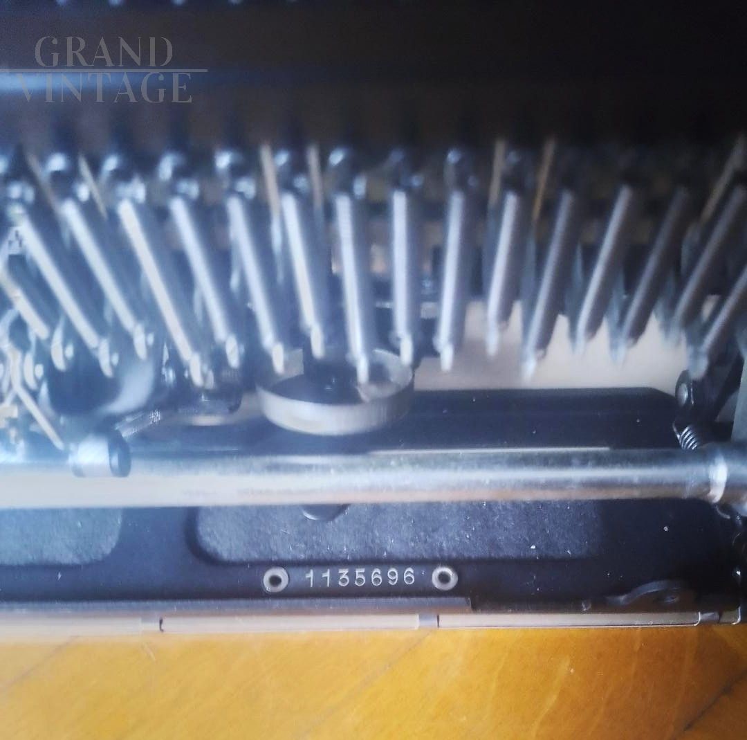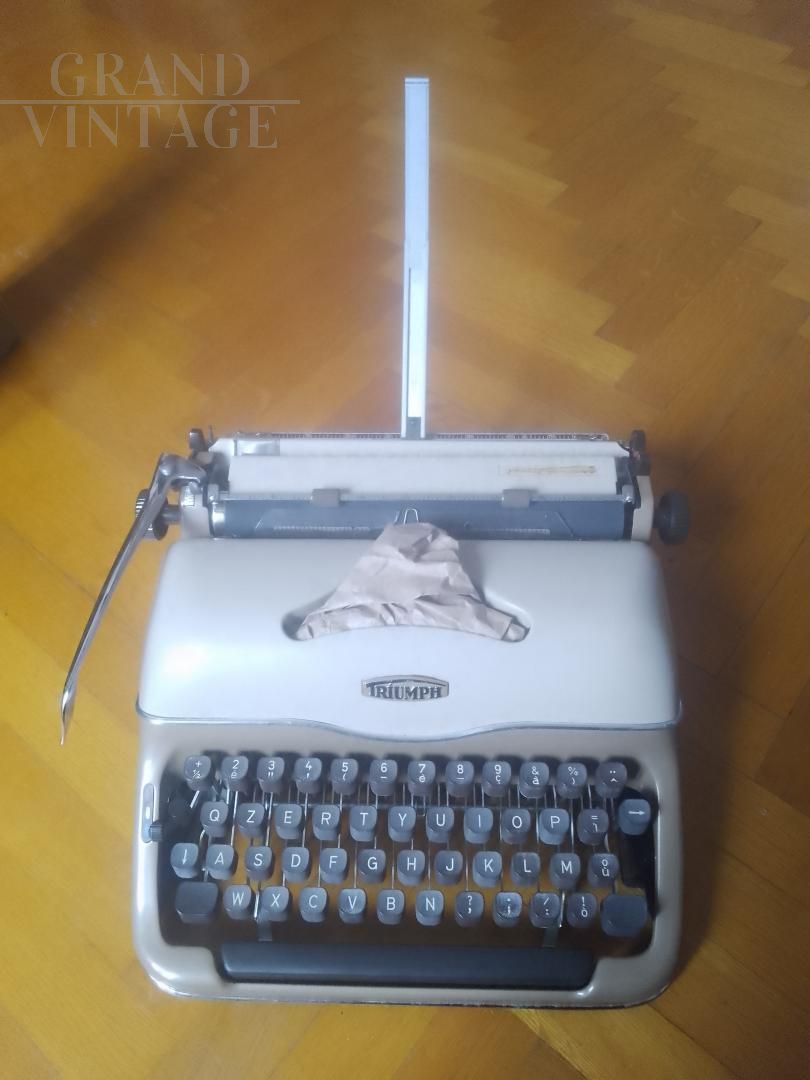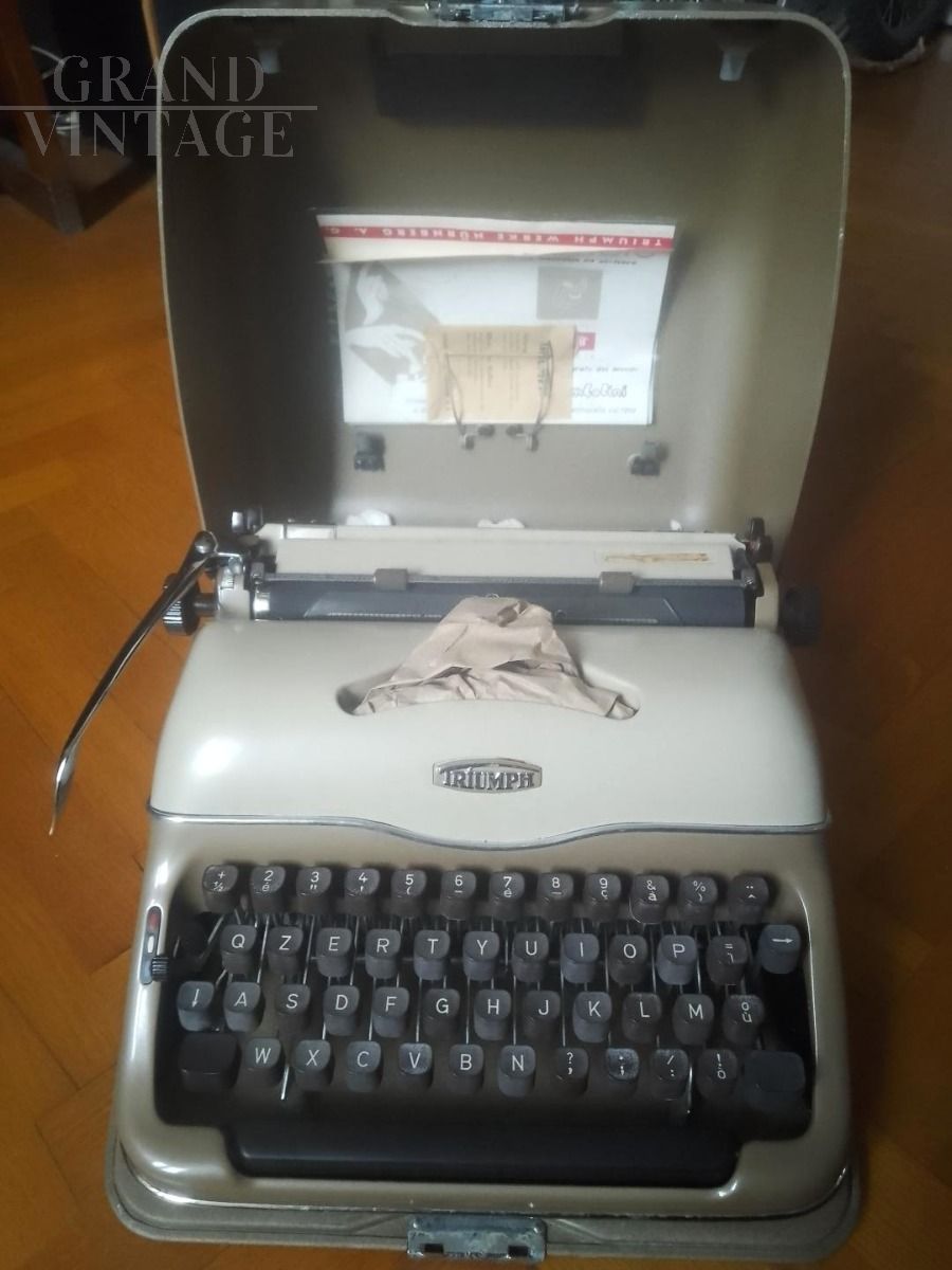 Triumph typewriter from the late 1950s, never used, in its aluminum case with instructions for use and original key. The machine is in excellent condition and has only a sign of rust, as shown in the photo.