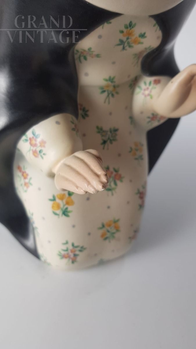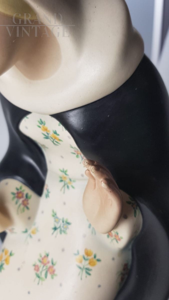 Lenci ceramic sculpture from the 1930s depicting a beautiful Madonna with black cloak and flowered dress.